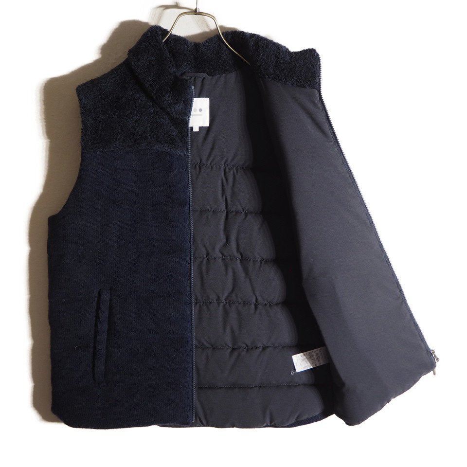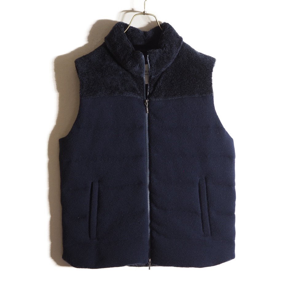 R0112z5 ■three dots スリードッツ■ ウール カシミヤニット ダウンベスト ネイビー L / ヨーク切り替え メンズ ブルゾン 紺 秋冬