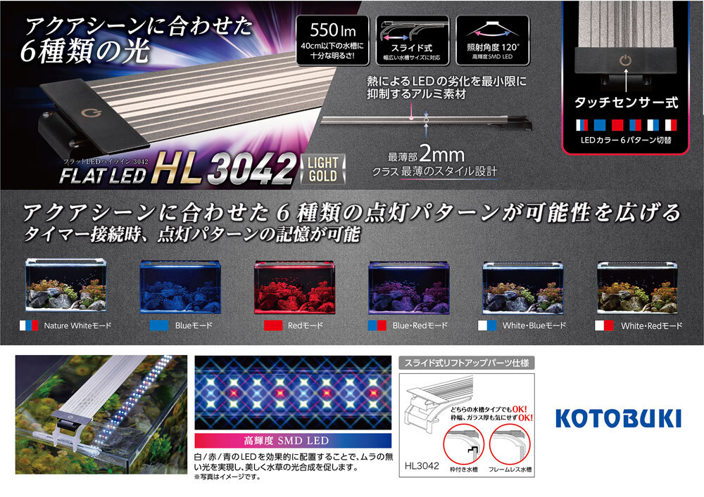 薄さ、多彩さ、美しさがさらに進化した、40~52cm水槽用LEDライトです。