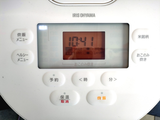 水を入れて通常の炊飯をして、通電と動作の確認を行っております。