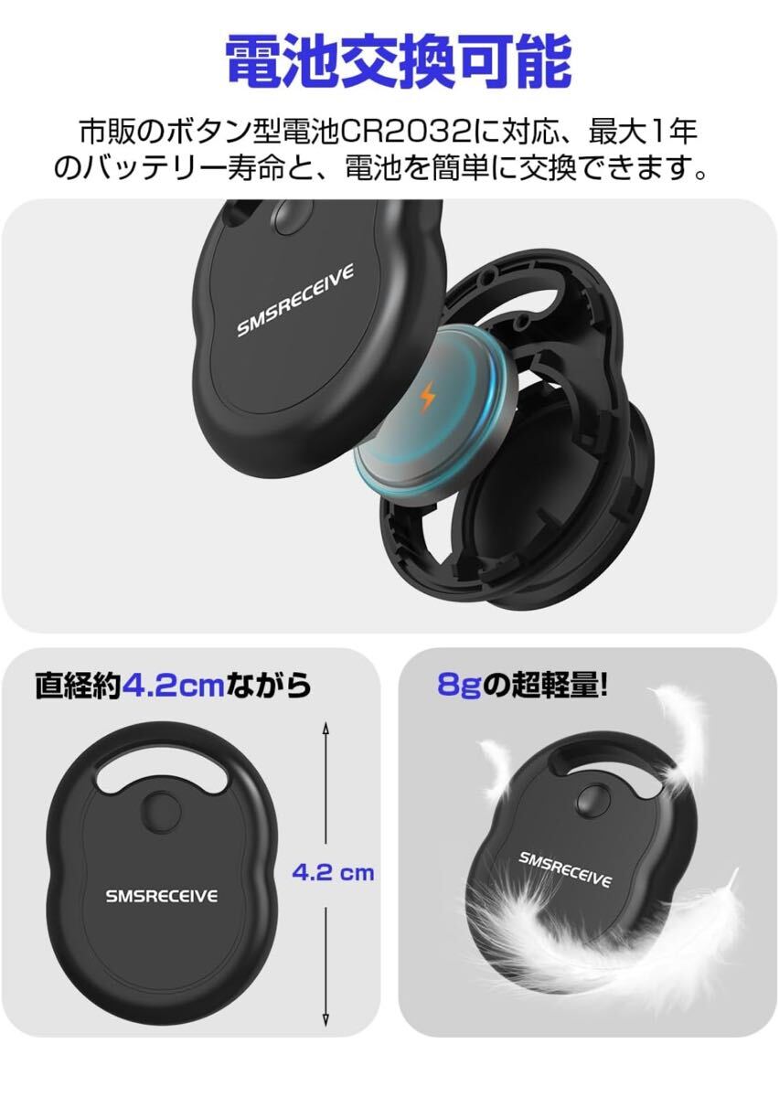 【音を鳴らして見つける・長寿命電池交換可能】このエアタグは85dB大音量アラート機能を搭載しており、紛失時にはアプリから音を鳴らして素早く見つけ出すことができます。バッグの底やソファの隙間に落としてしまった場合でも、大音量で位置を確認可能です。公共の場やパーティーなど、多くの人が集まる場所でもタグを利用してサクッとアイテムを取り戻せます。紛失時にも迅速に対応できるため、安心して毎日持ち歩くことができます。スマートタグのバッテリーは長寿命設計で、充電が不要で、コンビニなどで購入できるCR2032ボタン電池を使用します。電池を非常に長持ちします!これにより頻繁な電池交換の手間が省け、外出先でも安心して使い続けられます。旅行や仕事中にバッテリーが切れる心配なし。忙しい日常の中でも安心して使用できます。