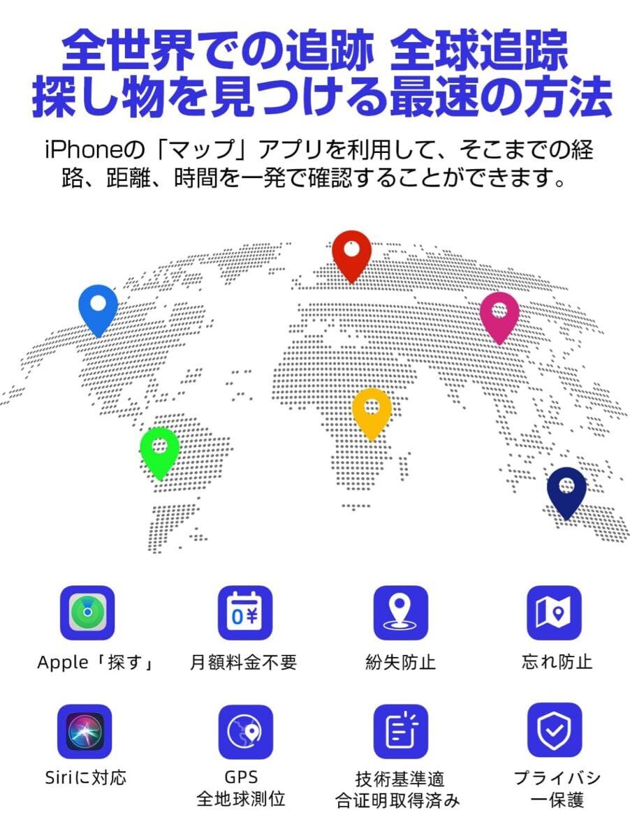 【安心のMFi認証品、GPSで全世界追跡】こちらのairtagは、Apple社の公式認証であるMFiを取得しており、iOSデバイスとの互換性が確保されています。iPhone、iPad、Macの「探す」ネットワークを利用して、紛失防止タグ は距離を問わず、全世界で正確にアイテムの位置を特定します。。デバイスを持っていて、「探す」アプリとBluetoothを開き、「持ち物を探す」「持ち物を追加」を順番にクリックし、「新しい持ち物を追加」を選択して、アプリ内の簡潔で明瞭な説明に従えば、簡単にペアリングが完了します。「探す」機能で失くしたアイテムをリアルタイムで追跡し、プライバシーも守ります。(ただし、この製品は iOS にのみ互換性があり、Android 機器とは互換性がありませんのでご注意ください。)