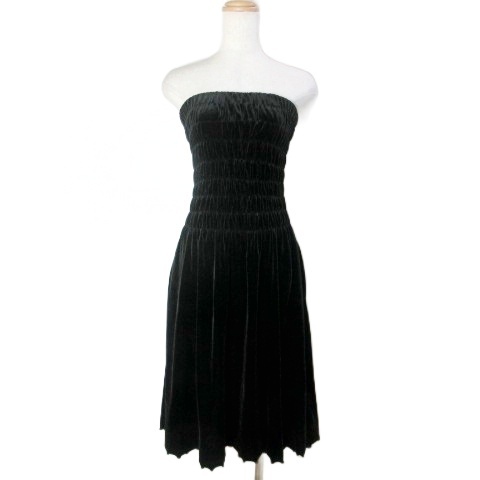 フォクシー リラクシング フォクシー ベアトップ ベロアワンピース ひざ丈 17603 シャーリング S 黒 ブラック ■YHS6 /X レディース