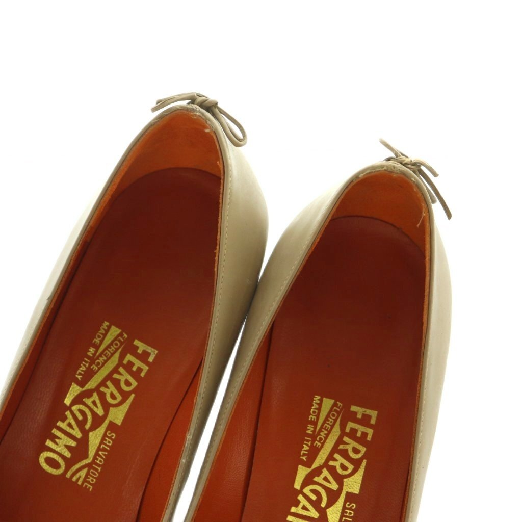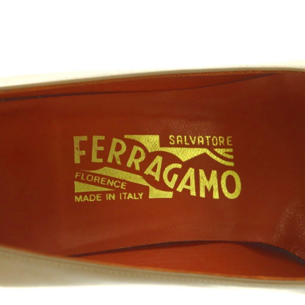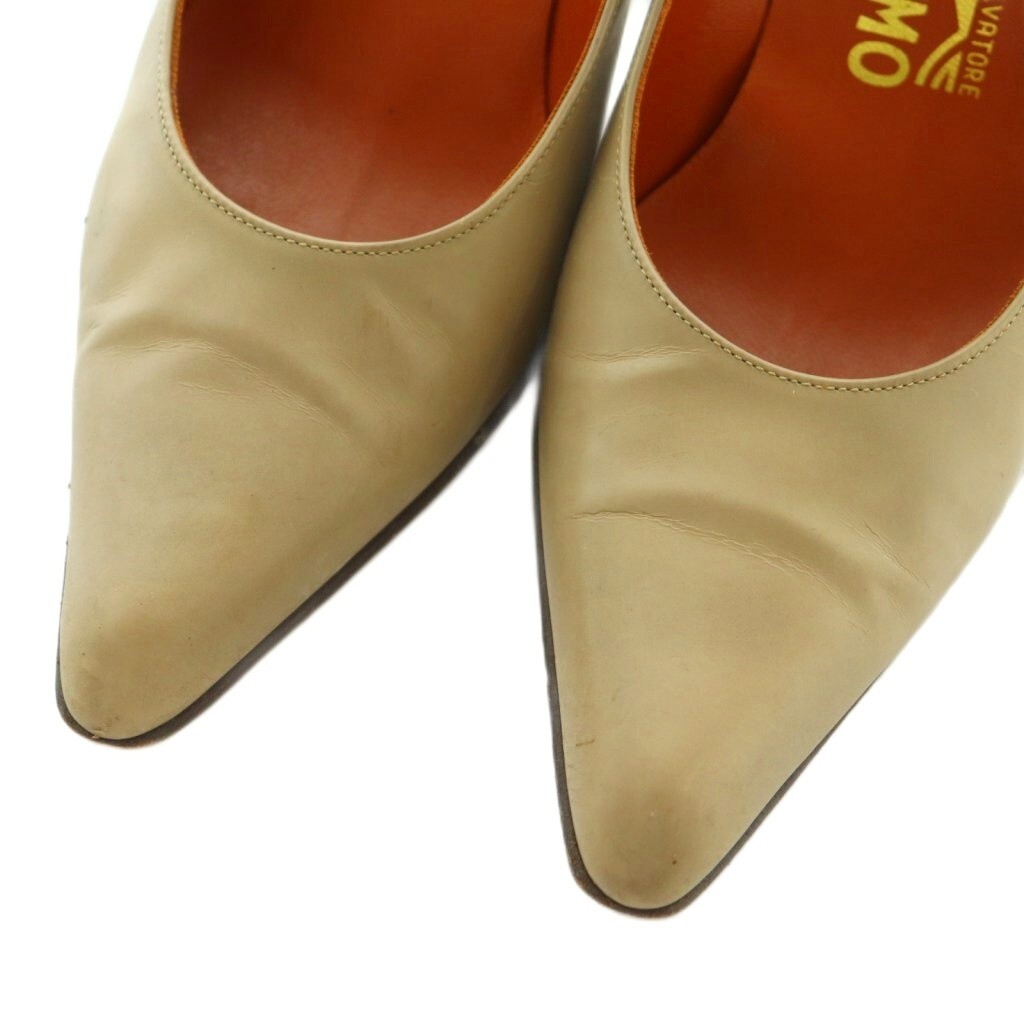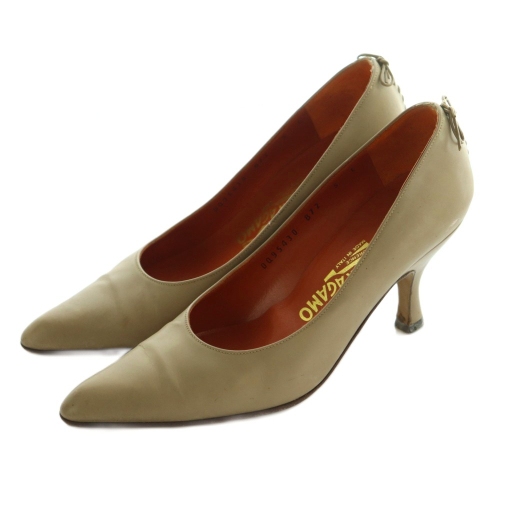 サルヴァトーレフェラガモ パンプス ポインテッドトゥ バックレースアップ 5 22.5cm ベージュ 95430 /MI ■OS レディース