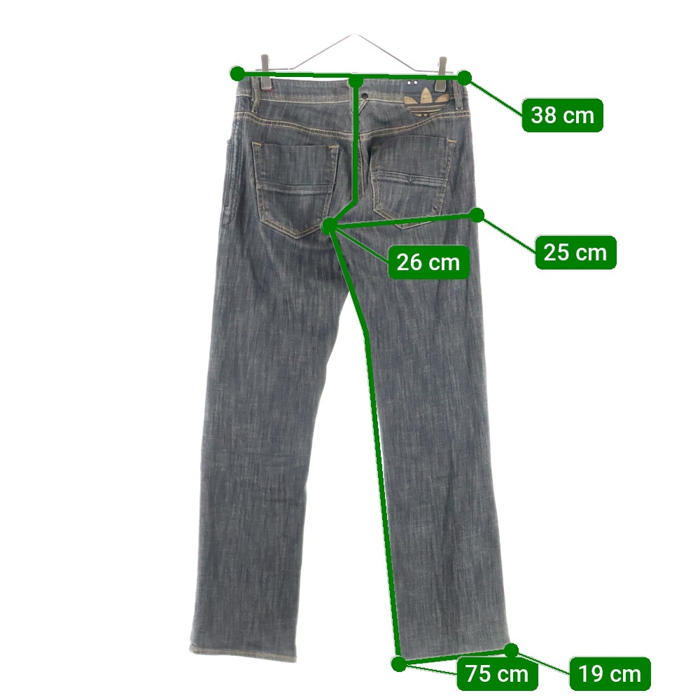 実寸 ウエスト:38センチ ワタリ:25センチ 股上:26センチ 股下:75センチ 裾幅:19センチ