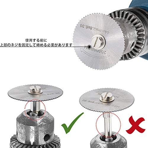 使用:木材、プラスチック、ガラス繊維、アルミニウム、薄い板金など。非常に良い互換性、DIYプロジェクトや家庭愛好家に適しています。鋸刃の選択には、小さい電気研削機は、小さい刃を選ぶことは大いにより安定します。ミニ電気研削機にも適用する、穴径6.35mmです。