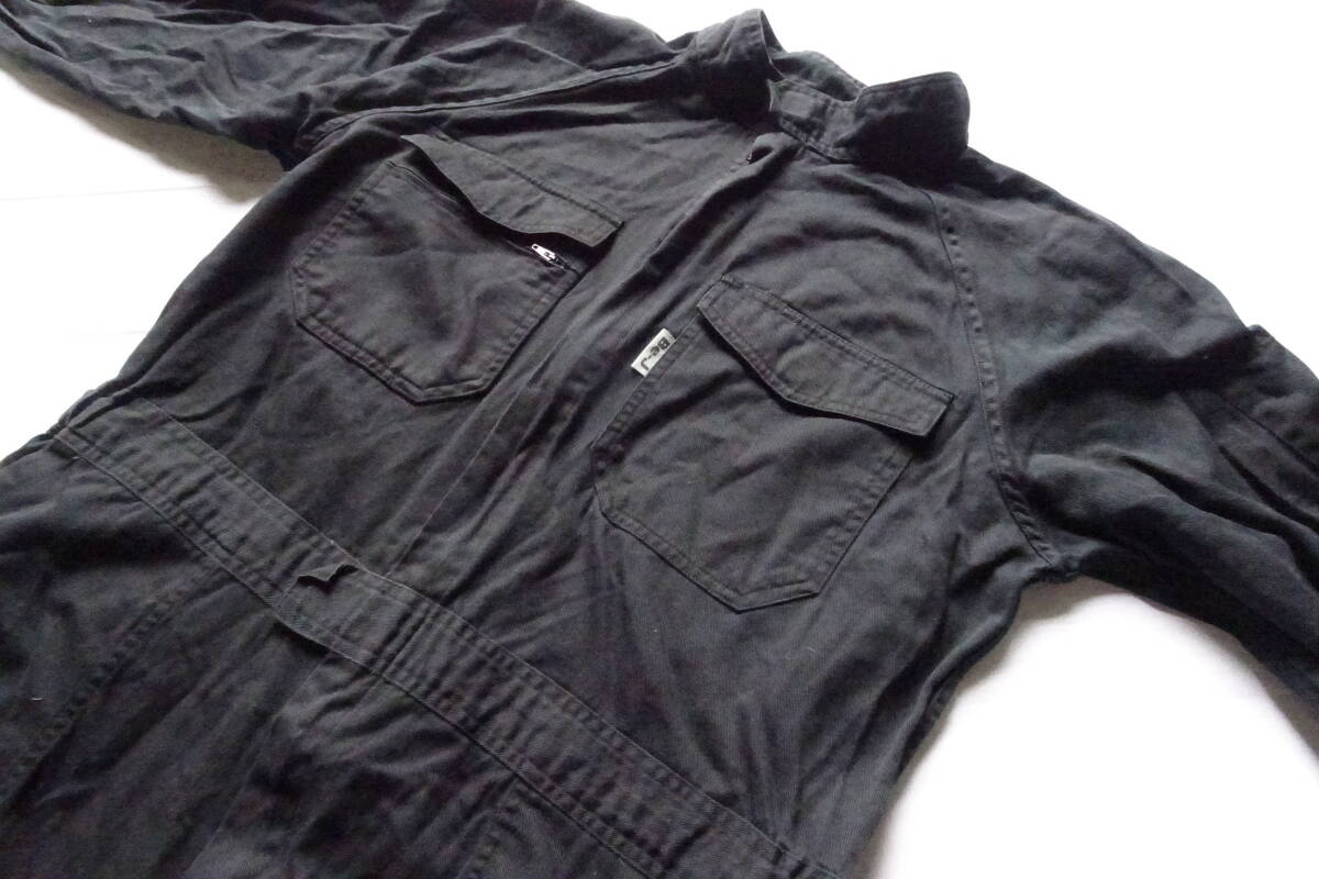Be-J/長袖オールインワン/作業着つなぎ/円管服/ワークウェア/前ジップアップ/両胸フラップポケット/黒/ブラック/ELサイズ(10/22R7)