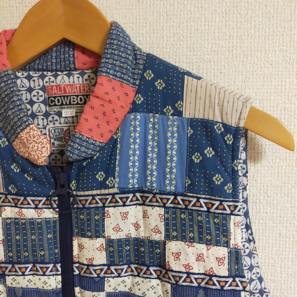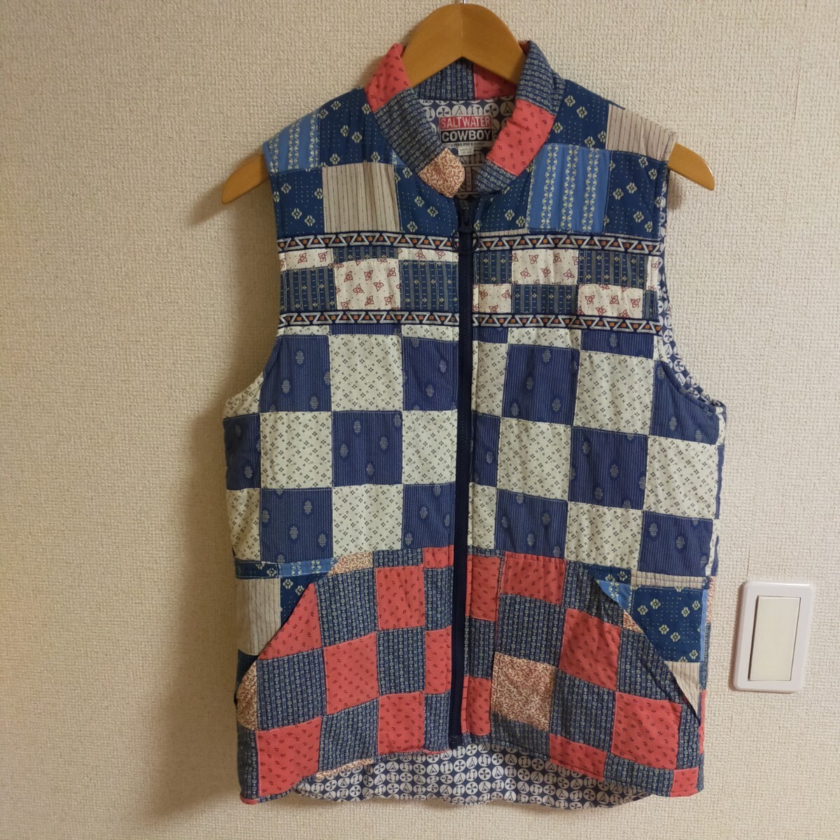 | SALTWATER COWBOY パッチワーク ベスト 中綿 M インディゴ風マルチカラー | |