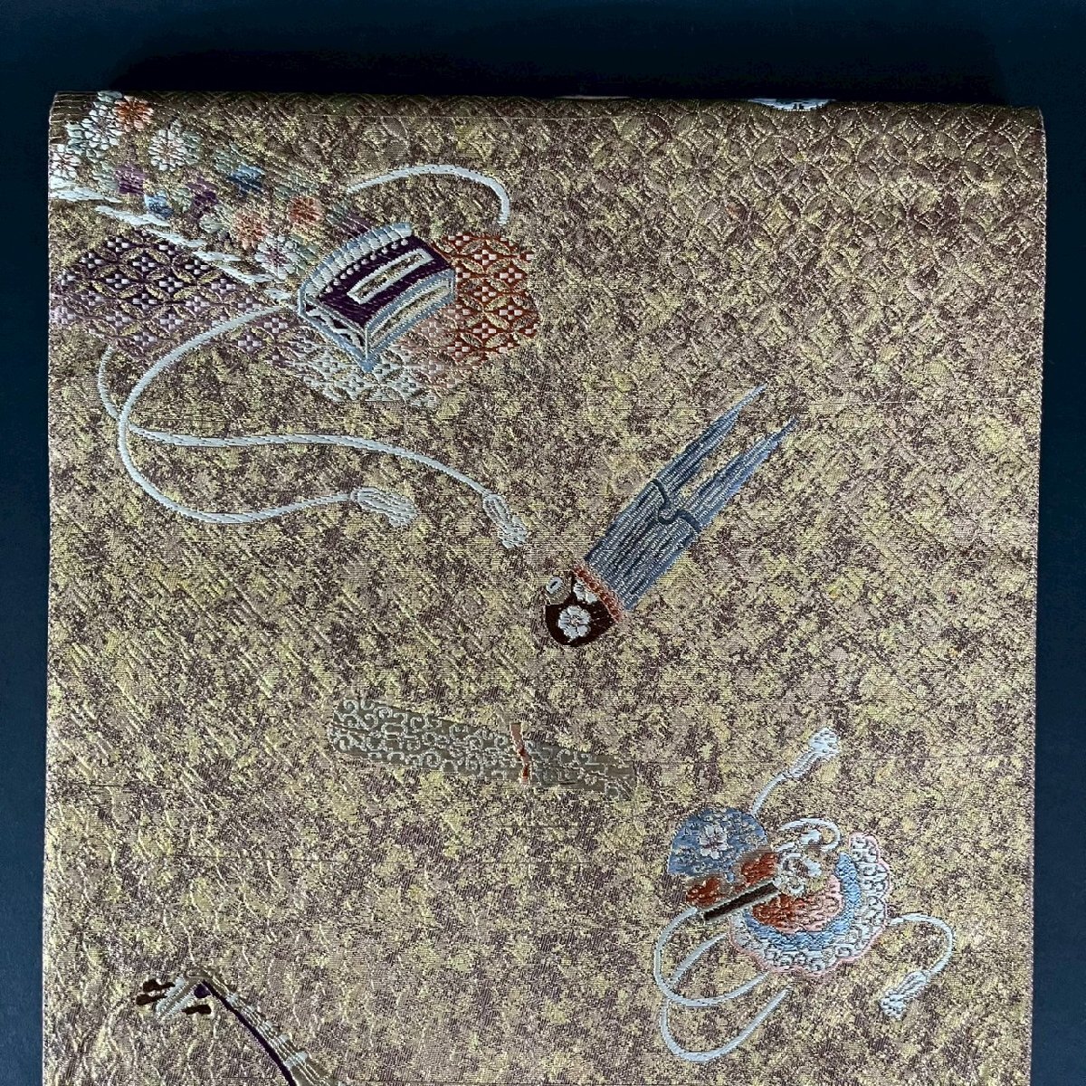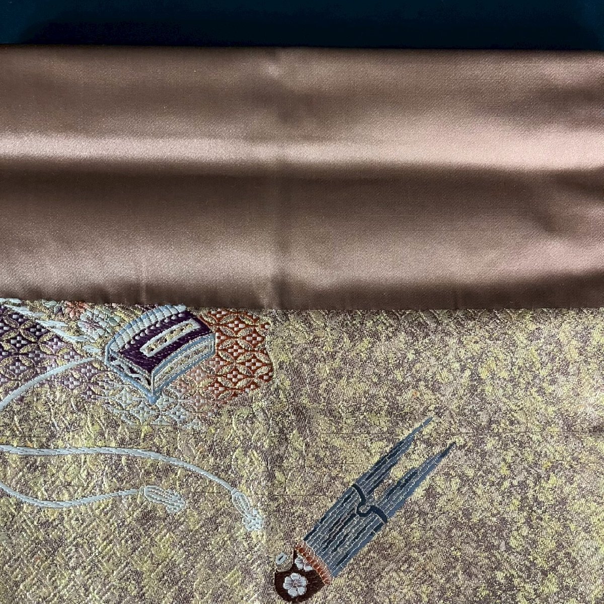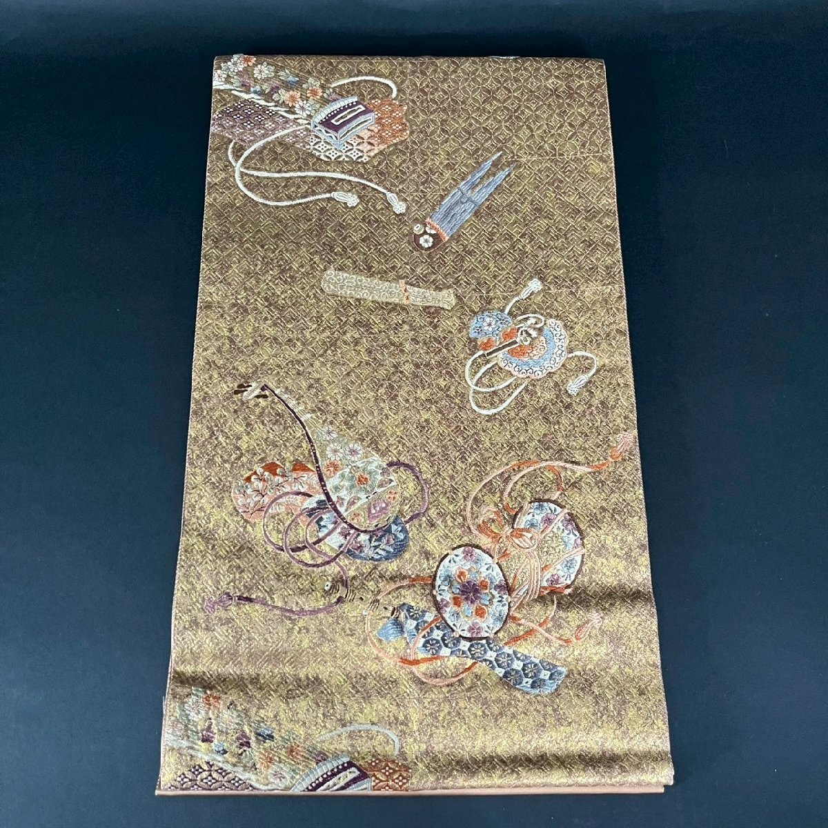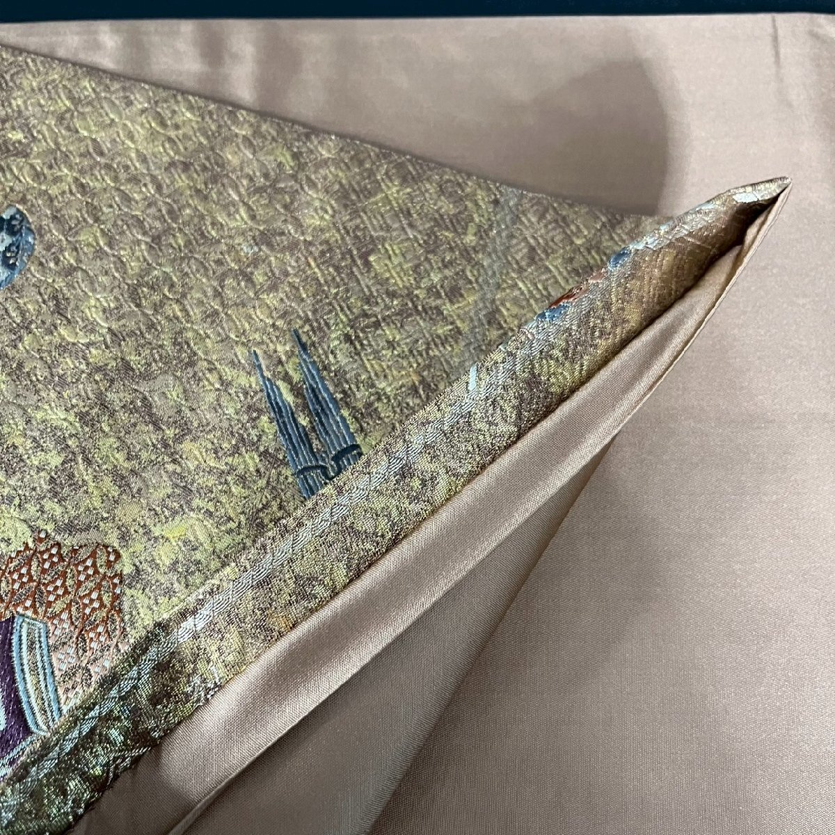 SW0908-5‐3 帯 袋帯 佐賀 本寿花謹製 刺繍 箱付 着物 振袖 正絹 和服 和風 ファッション 小物 伝統 工芸 31×432㎝ 120サイズ