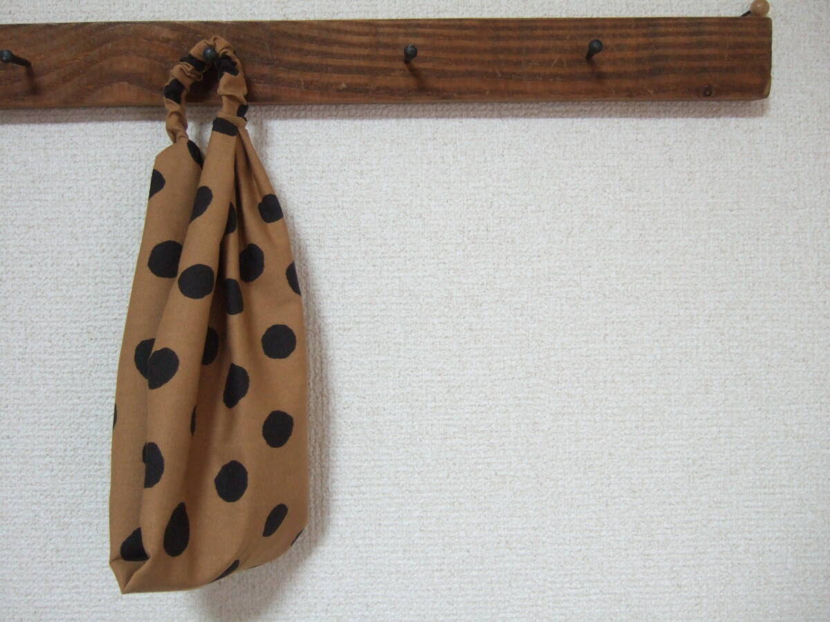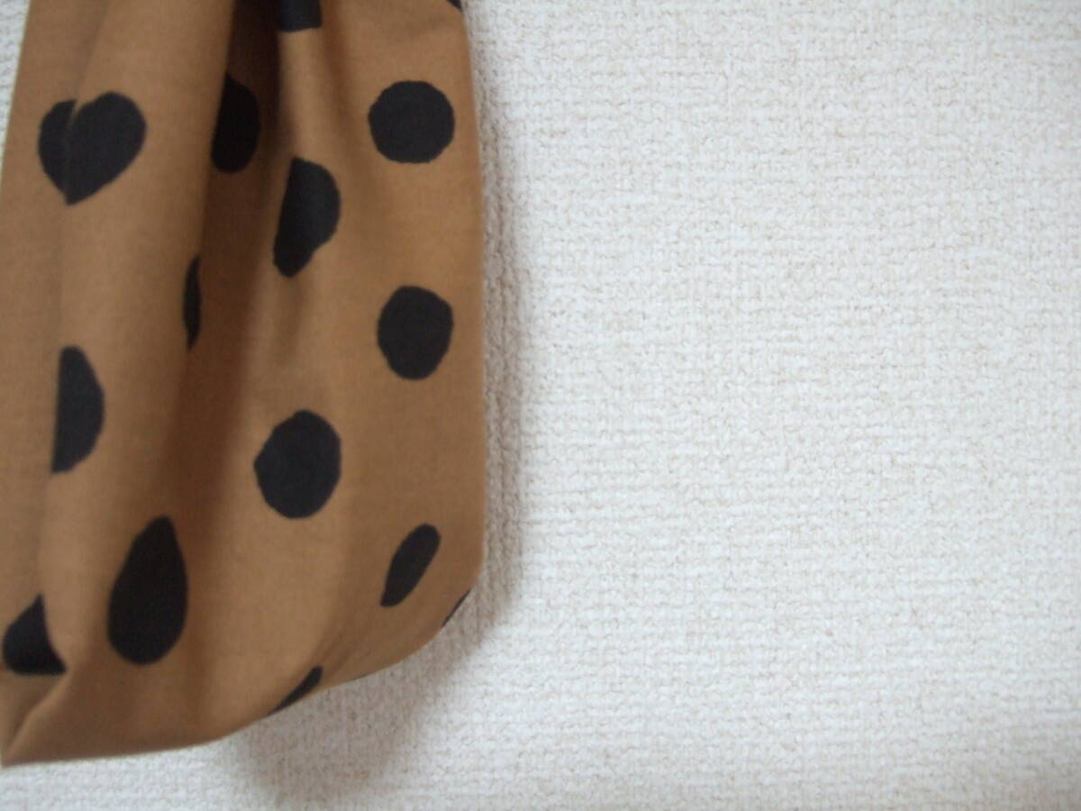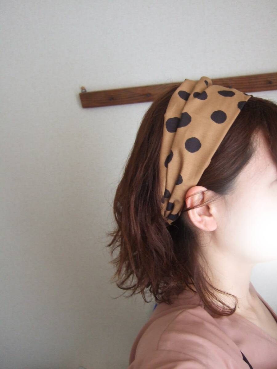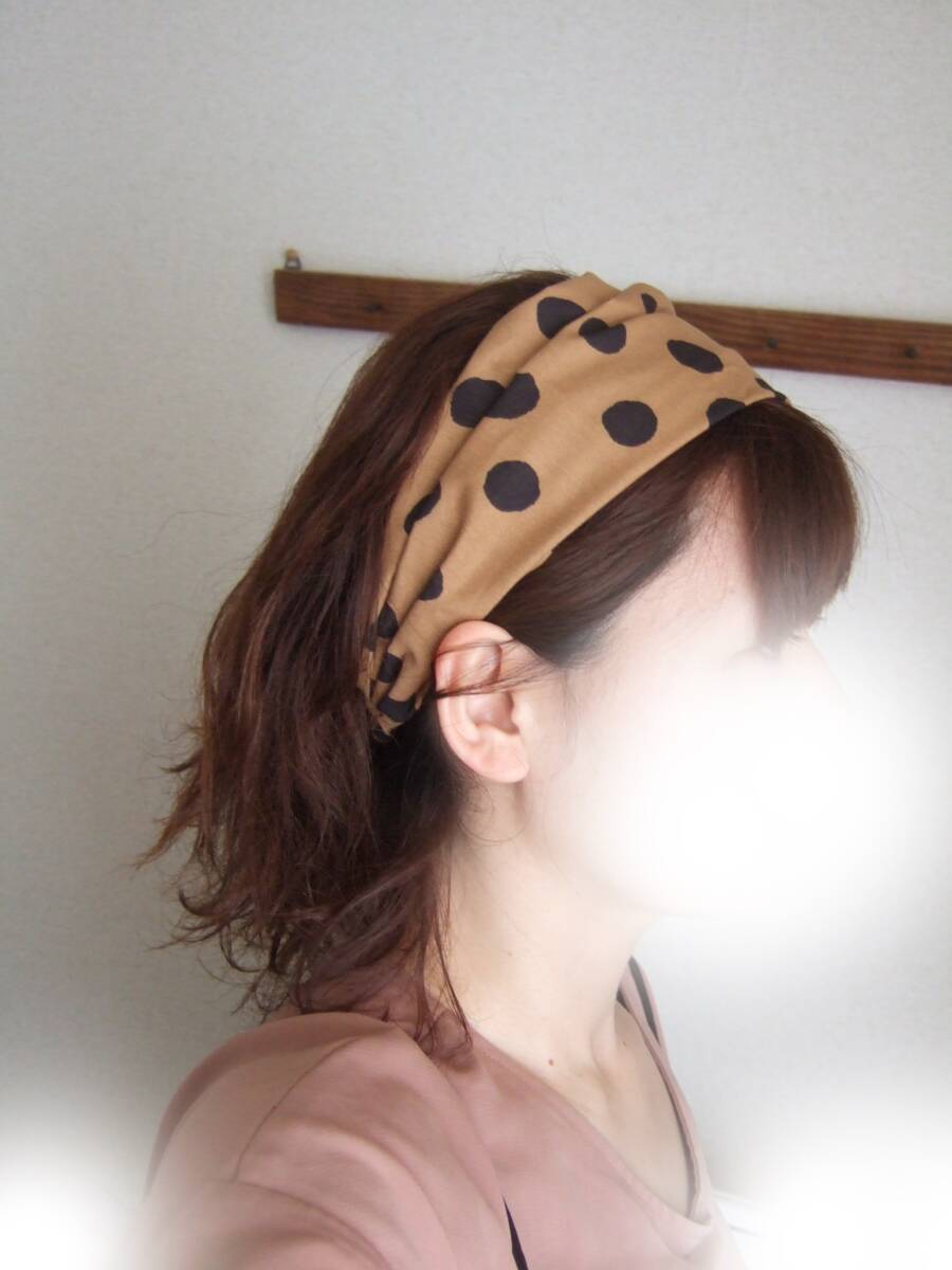 ★即決★ハンドメイド 大きな水玉とカラーリングが大人かわいい ブラウン*黒 コットンのゆるターバン**ヘアバンド