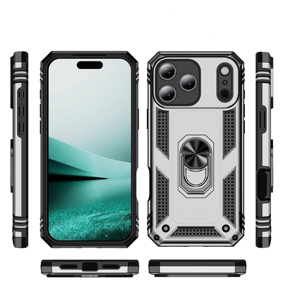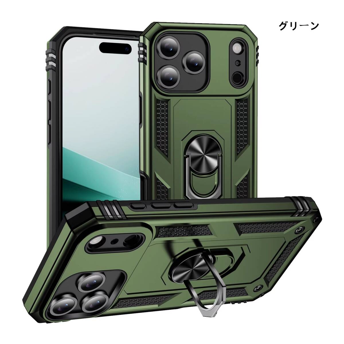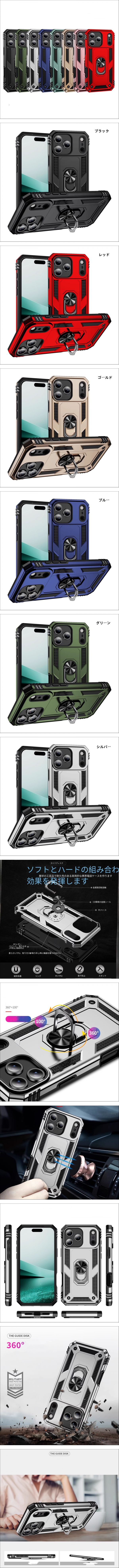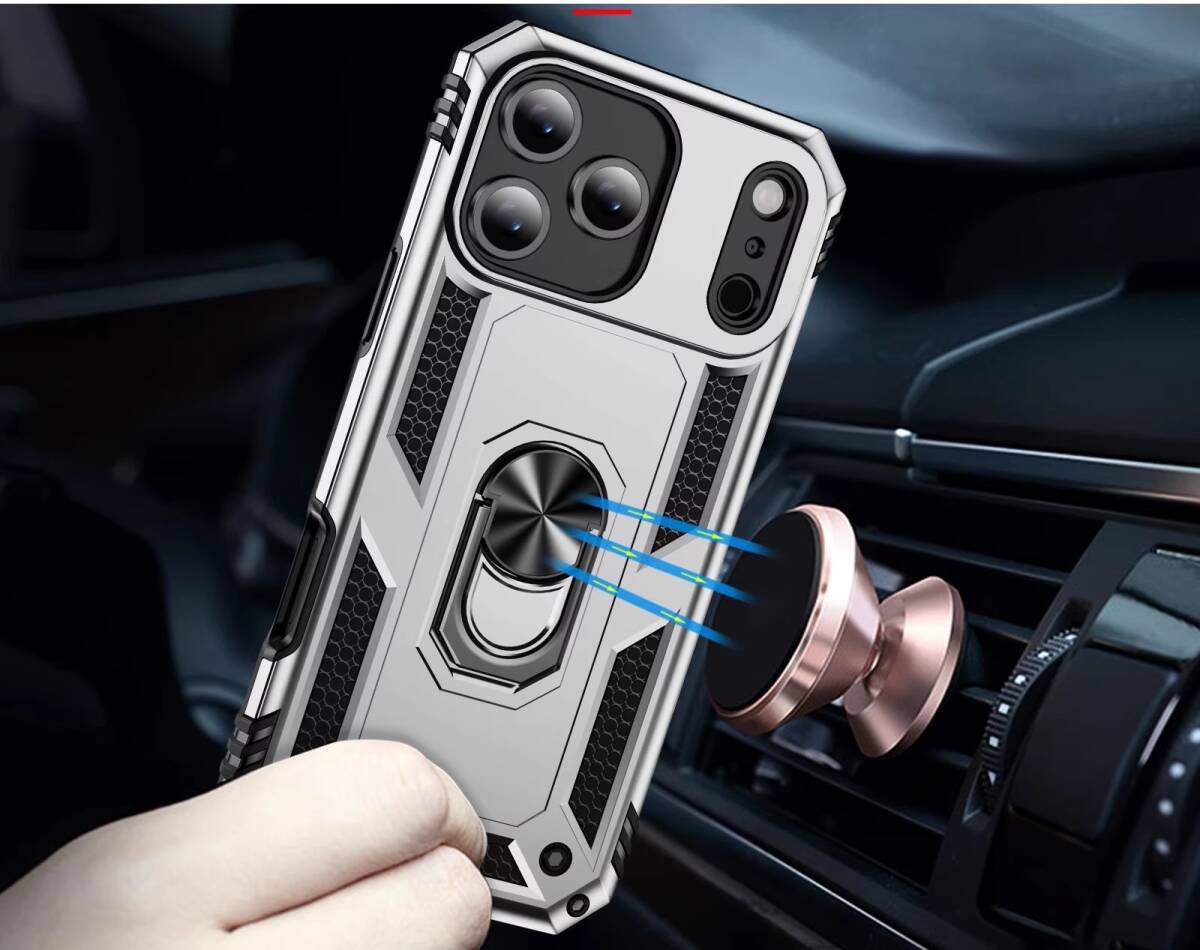 iPhone17 (6.3インチ) 用 ケース 軍士甲デザイン 車載磁気吸着スタンド付き 衝撃吸収 防 保護カバー | |||