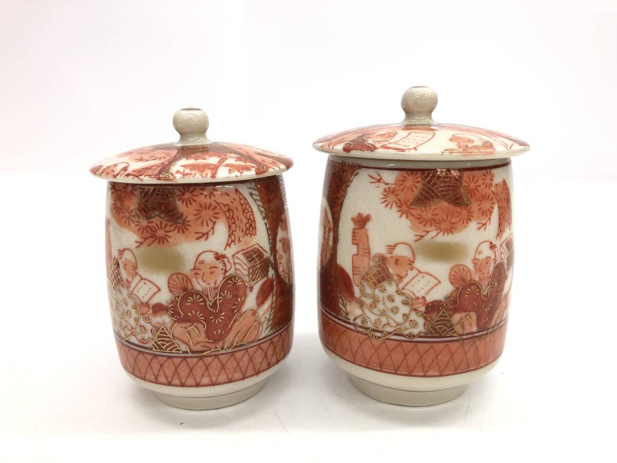 | 未使用 保管品 九谷焼 九谷陶華 蓋付 夫婦湯呑 湯呑み お茶呑み茶碗 湯呑み茶碗 ペア 大小2客セット 赤絵 茶器 和食器 陶器製 貫入 共箱 |