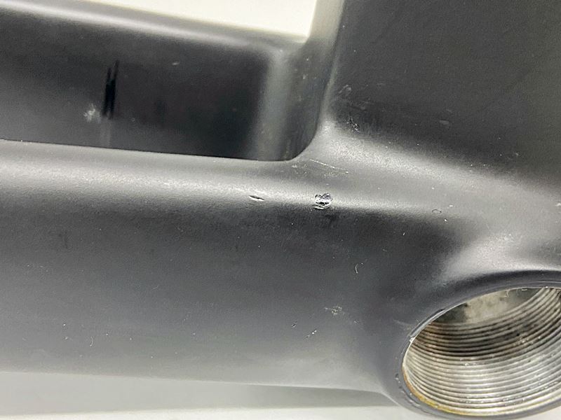 フォーク内側、チェーンステー内側にタイヤのスレ跡があります。