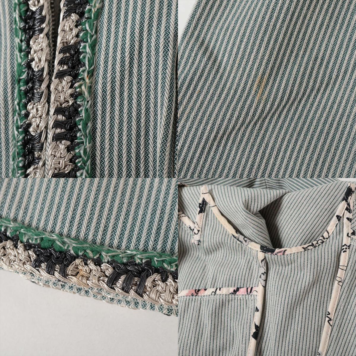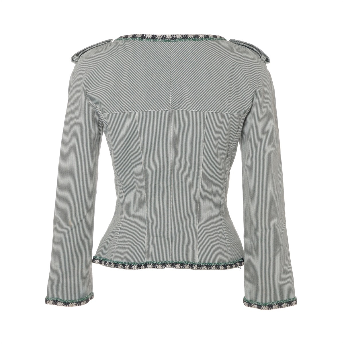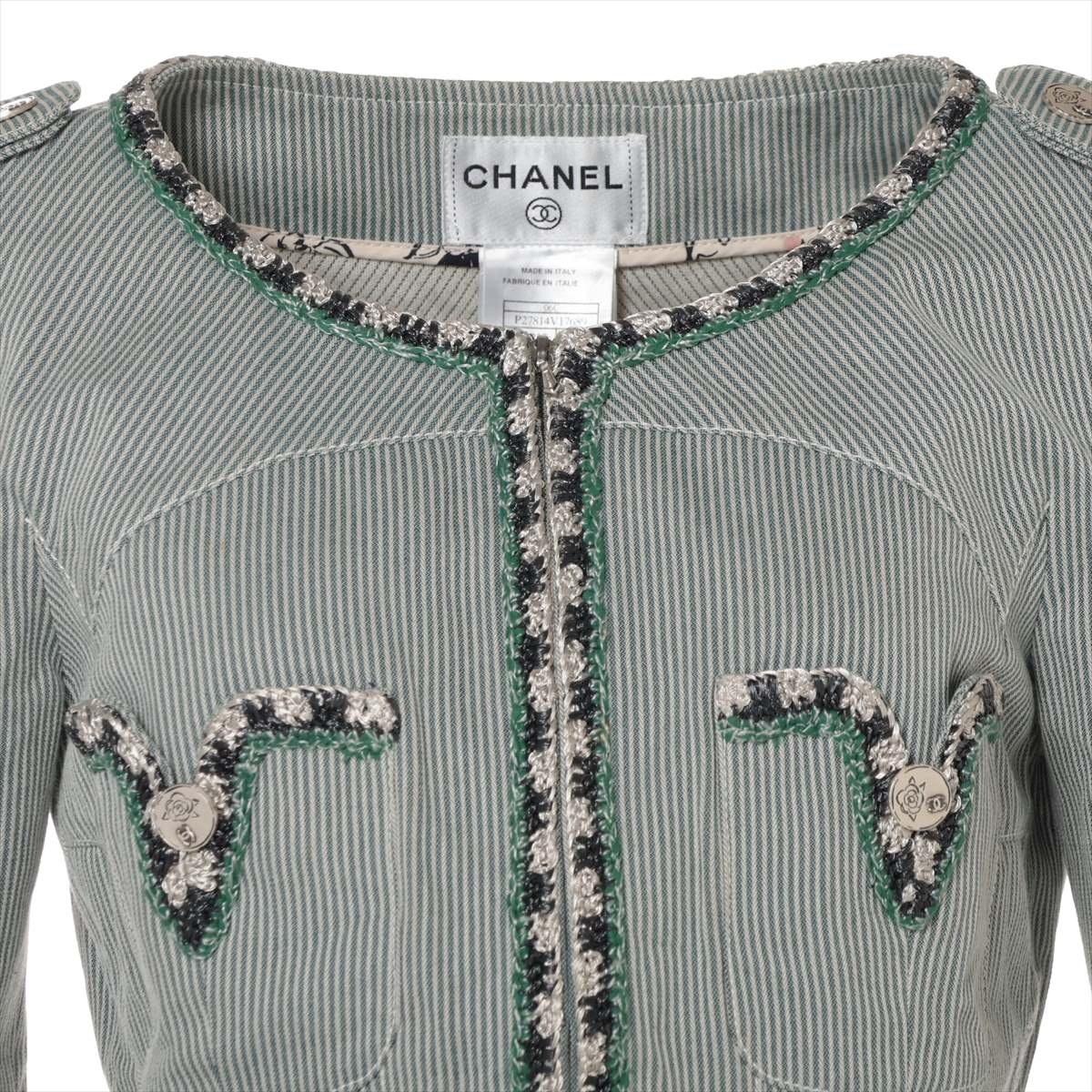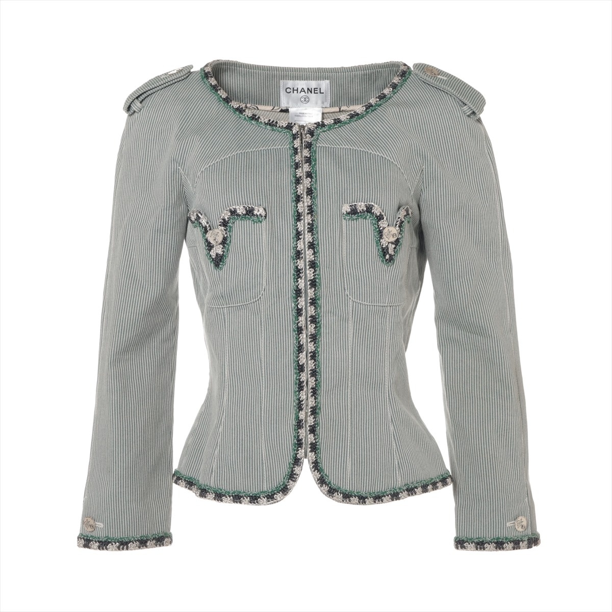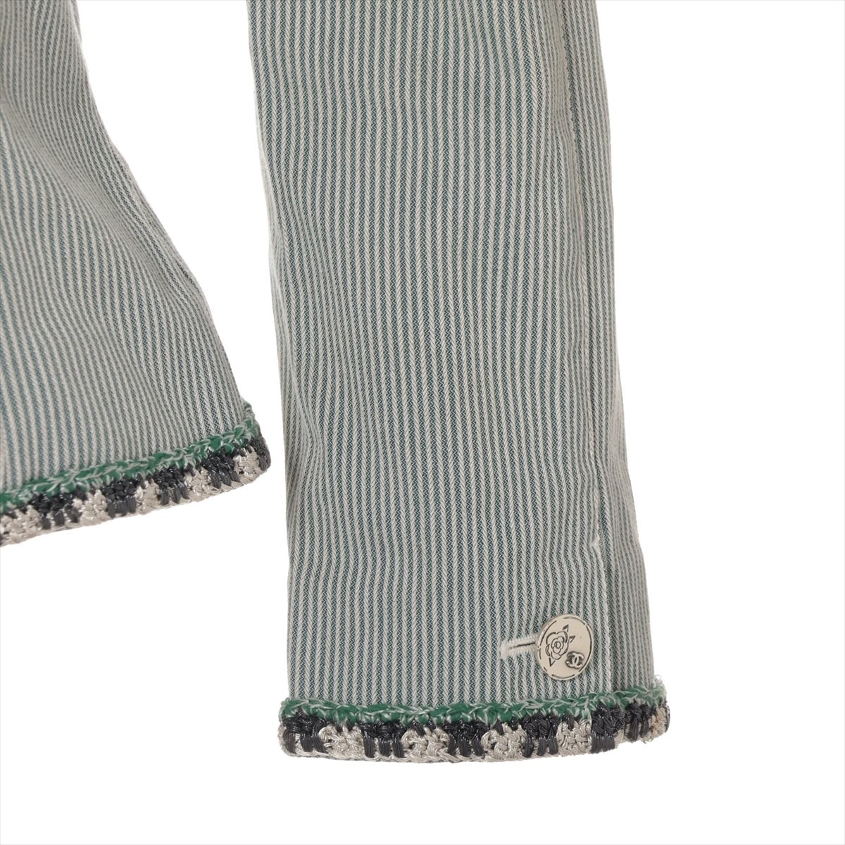 シャネル CHANEL ジャケット コットン ノーカラー 06C 2006 36 ツイードリム グリーン