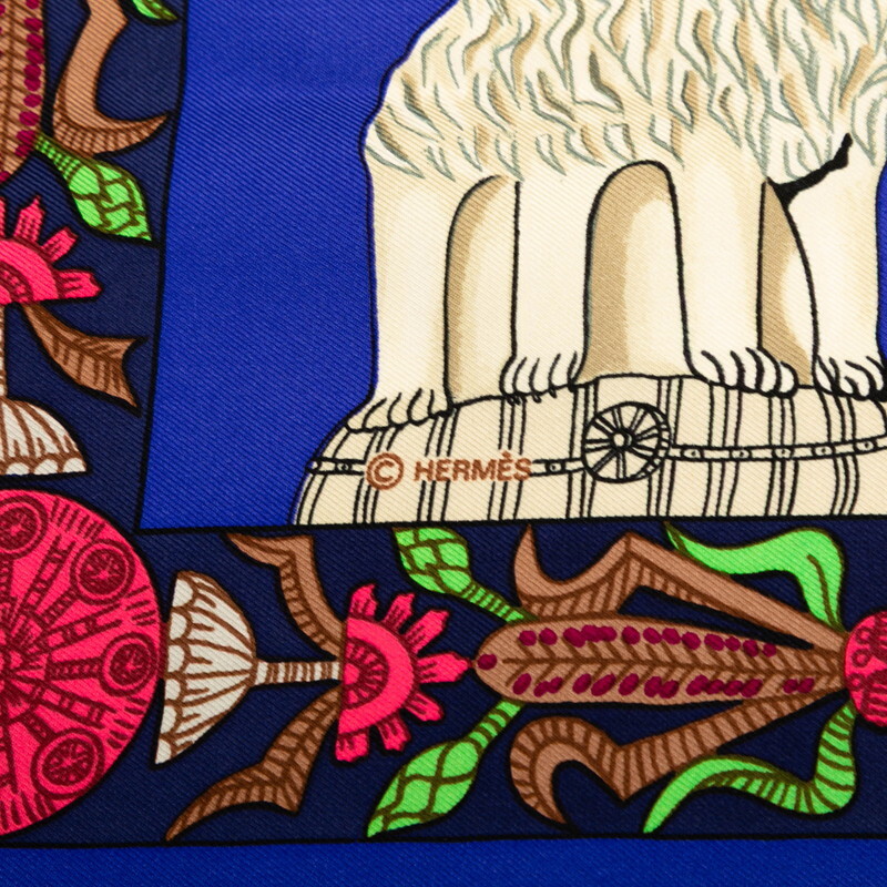 エルメス カレ90 TORANA 塔門 スカーフ ブルー マルチカラー シルク レディース HERMES 【中古】