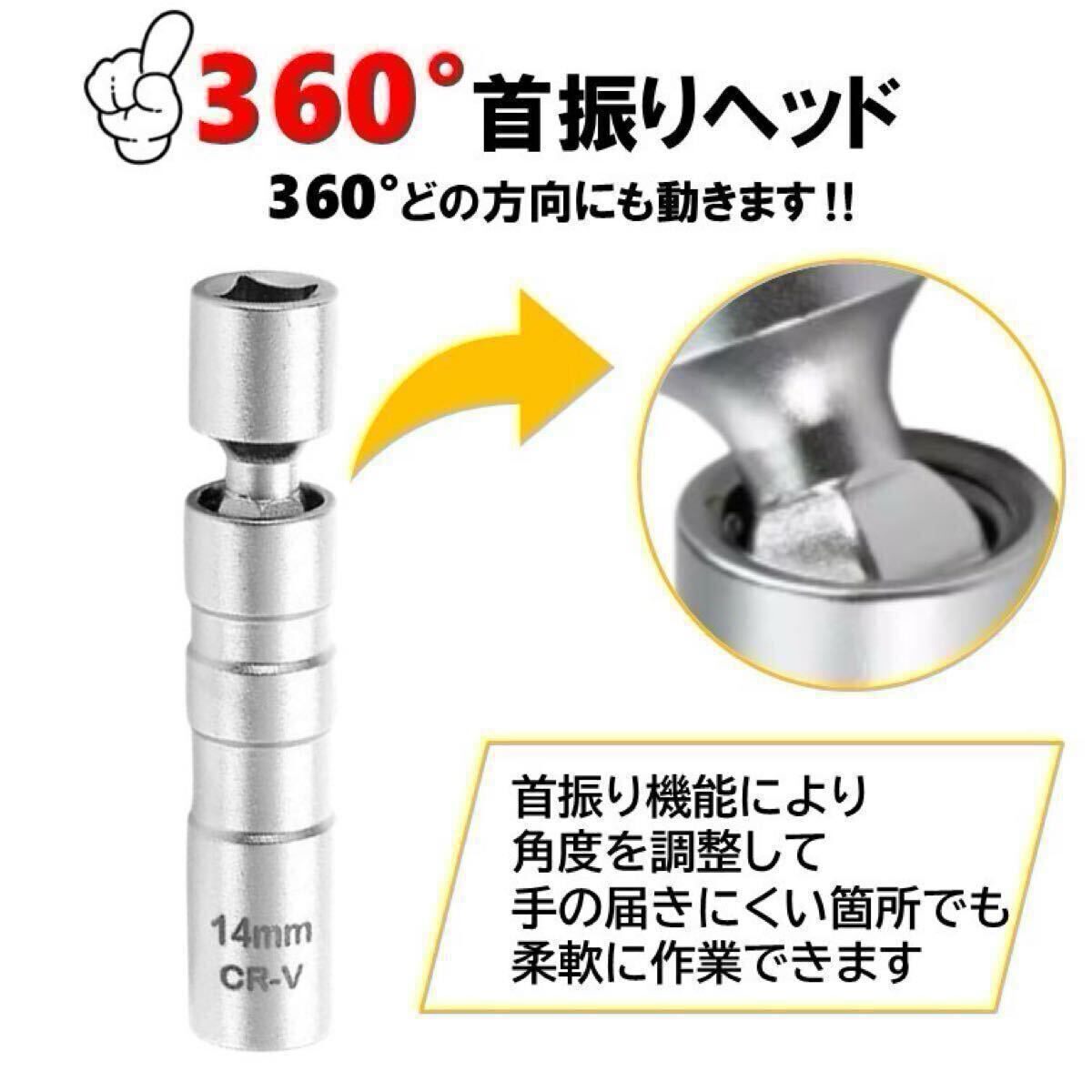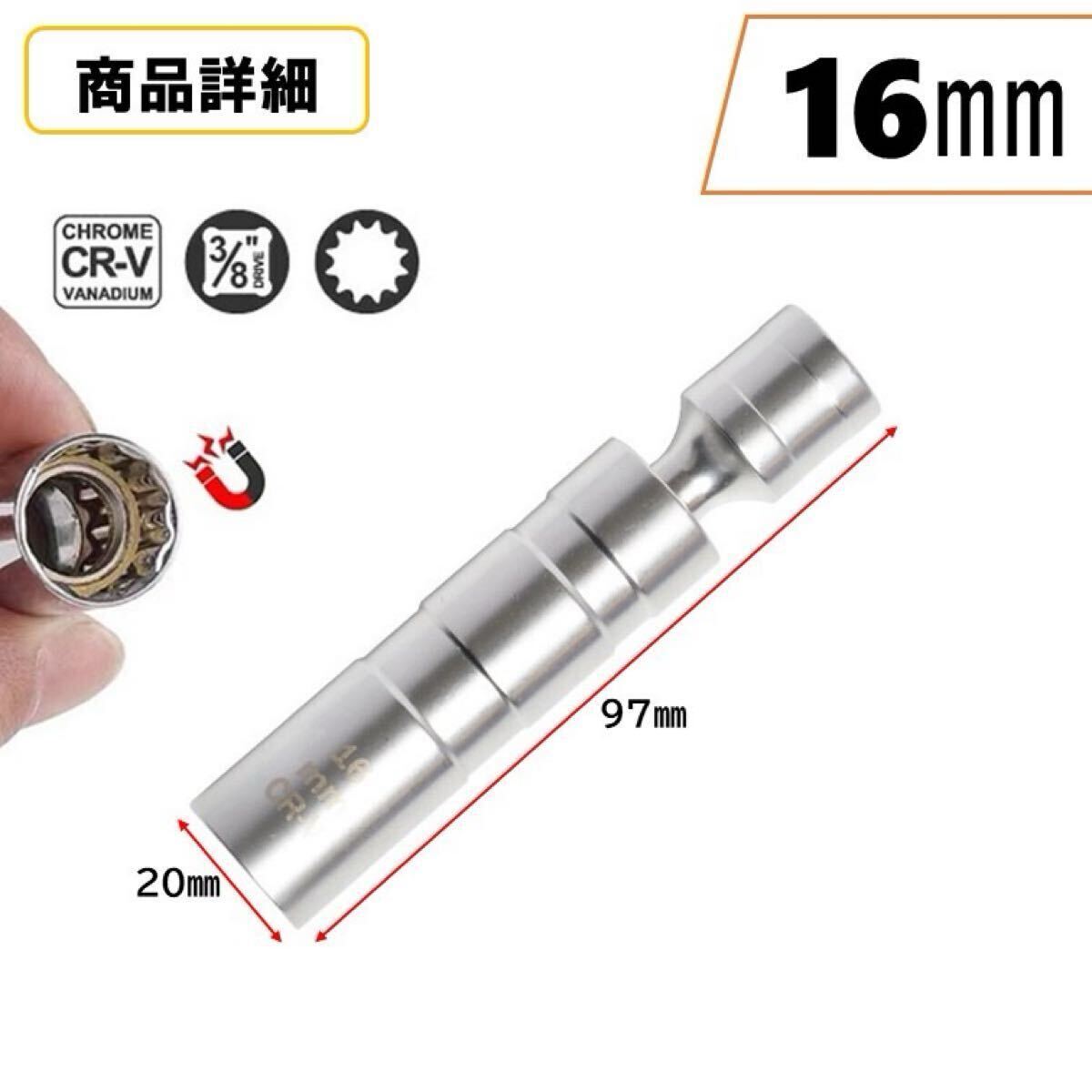 3/8サイズ(9.5mm)首振りプラグレンチ16mmになります。