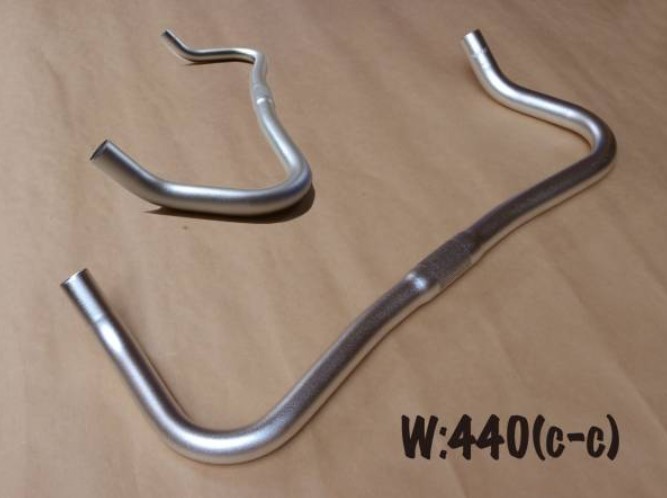<新品 即決> W:440mm ブルホーン バー グリップ径 22.2 / クランプ 25.4 W:440mm BSW:10° (銀)