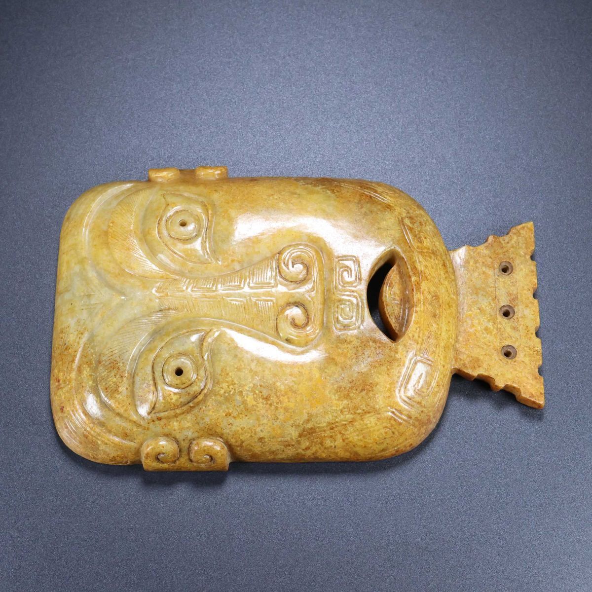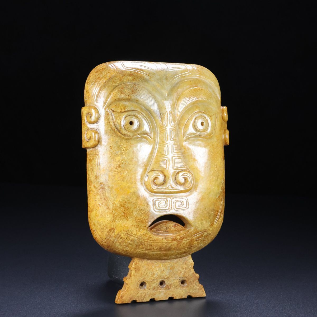 【永】漢代時期 和田玉 古玉彫 高古玉 面具 人臉彫 極細工 置物擺件 古美術品 時代物 古董品 古美味 骨董品 旧家蔵出 中国唐物 463g