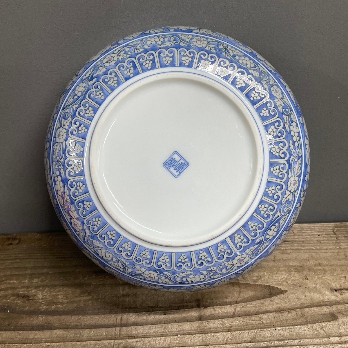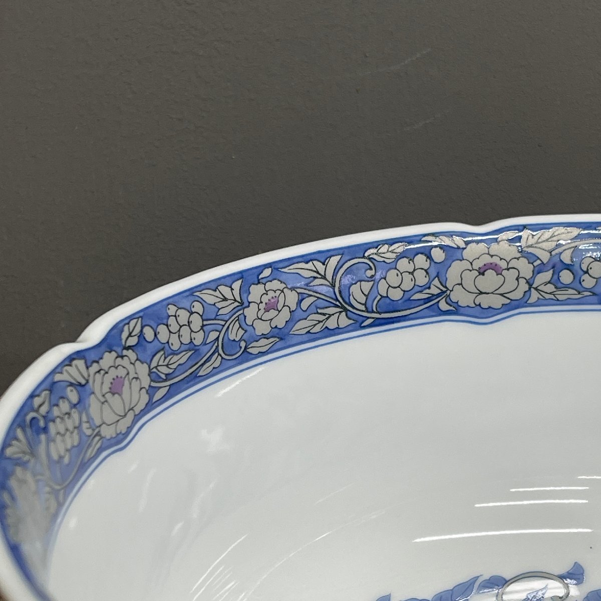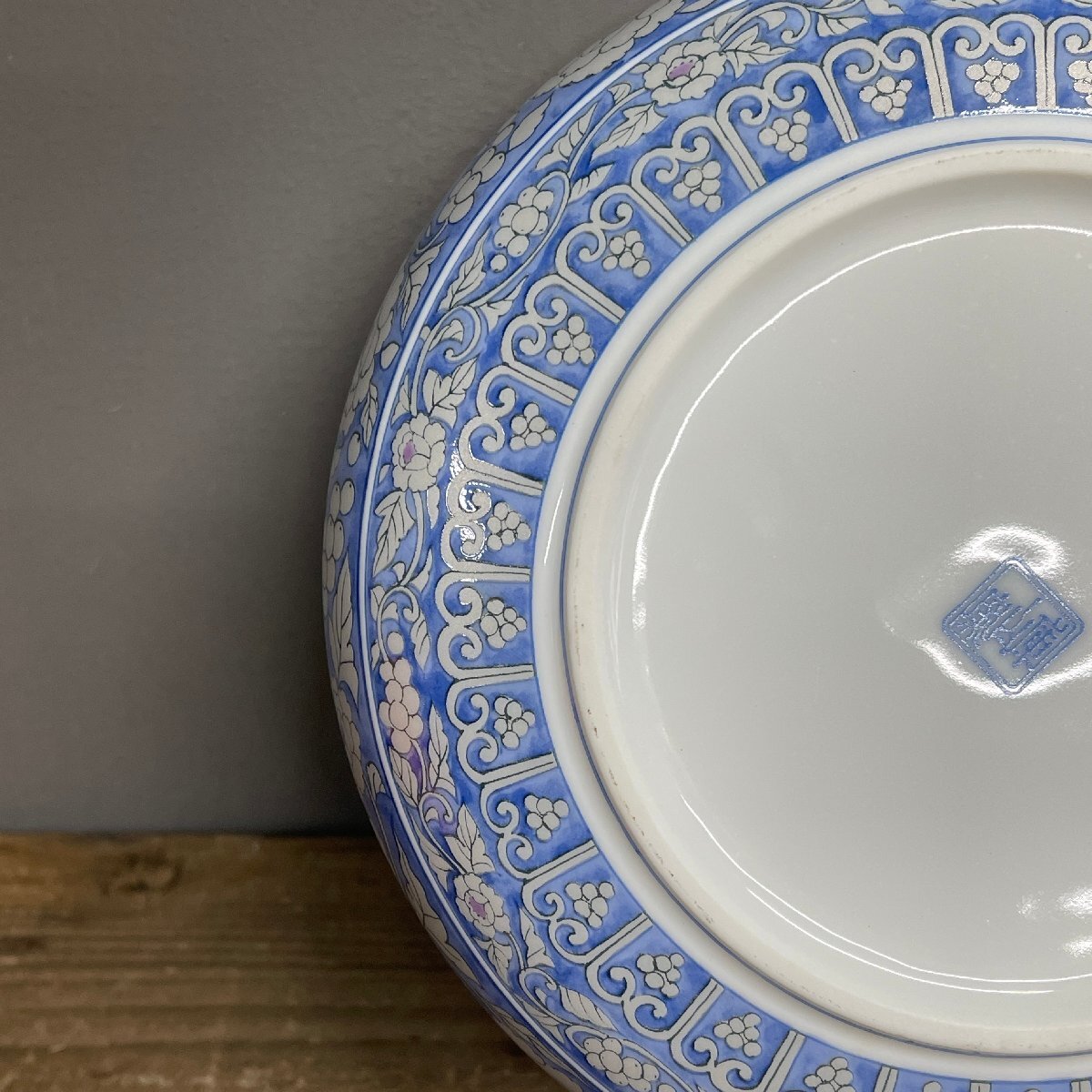 未使用★保管品★★美濃焼★庫山窯★牡丹柄★青彩★深皿★大皿