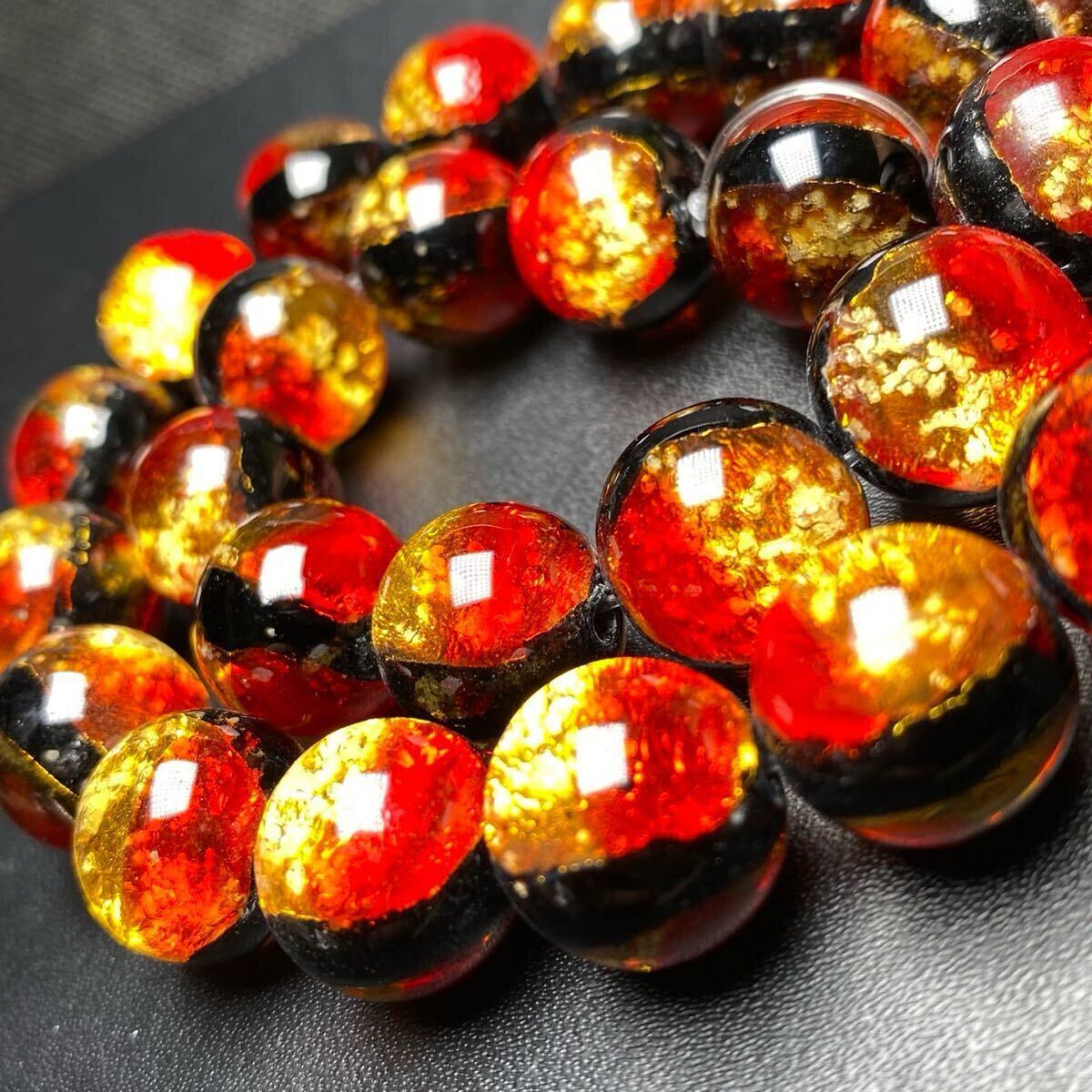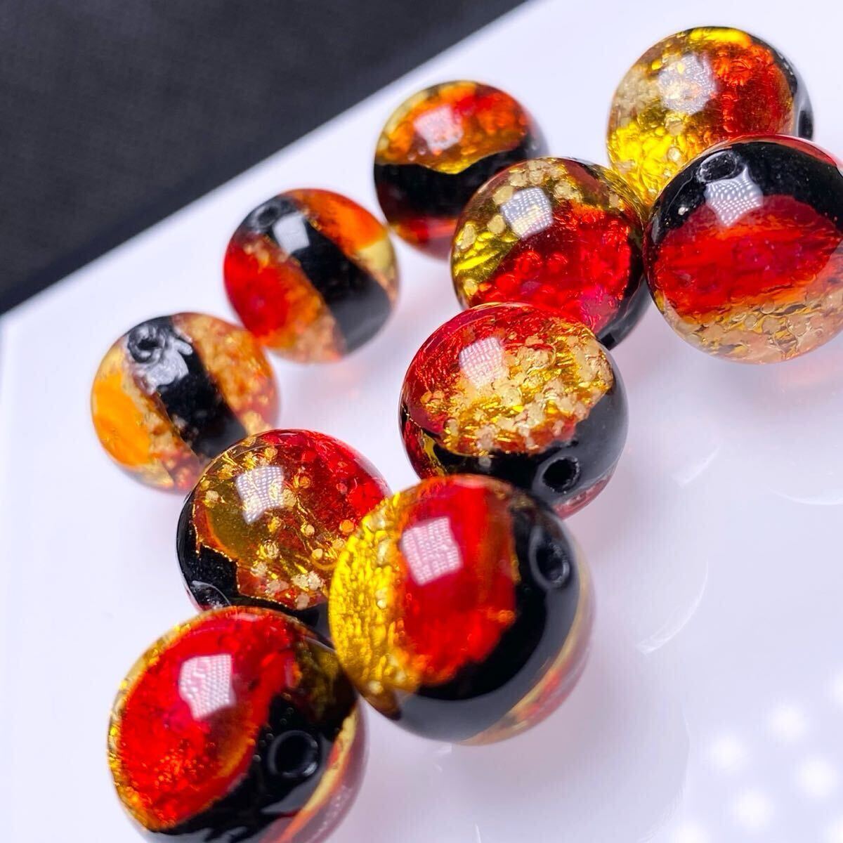 職人がひとつひとつ色の付いたガラスを溶かして鉄心に丸め、水飴のように溶けた状態のガラスに、銀箔(ぎんぱく)を重ね、特殊な技法で美しい色を表現しています。