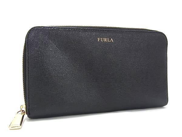 ■美品■ FURLA フルラ レザー ラウンドファスナー 長財布 ウォレット 札入れ 小銭入れ カード入れ レディース ブラック系 DH4698