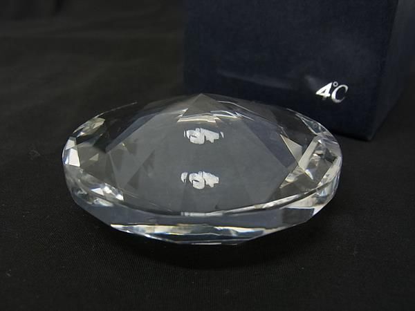 ■極美品■ 4℃ ヨンドシー ダイヤモチーフ ペーパーウェイト オブジェ 置物 インテリア クリア DG1616