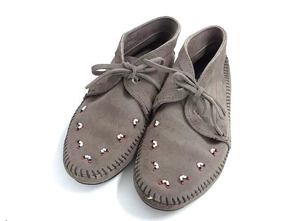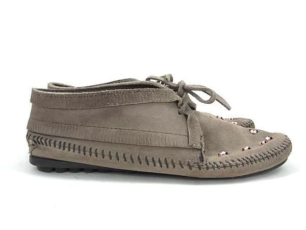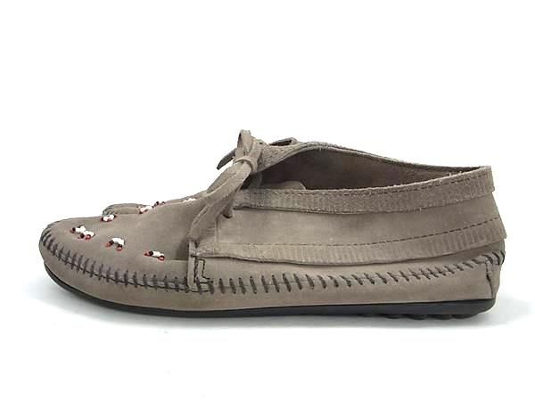 ■美品■ MINNE TONKA ミネトンカ スエード×ビーズ モカシン 表記サイズ 8 (約25.0cm) 靴 シューズ レディース グレー系 DF7575