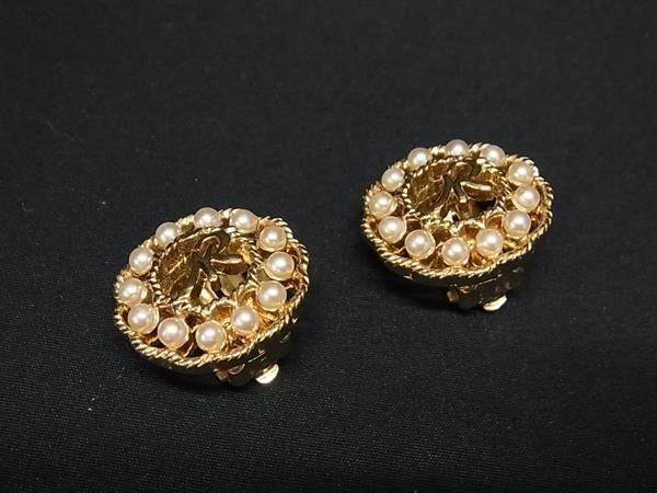 ■美品■ NINA RICCI ニナリッチ パール クリップ式 イヤリング アクセサリー レディース ゴールド系 DF7463