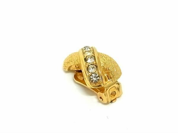 ■美品■ ChristianDior クリスチャンディオール ラインストーン 片耳のみ クリップ式 イヤリング アクセサリー ゴールド系 DF7477