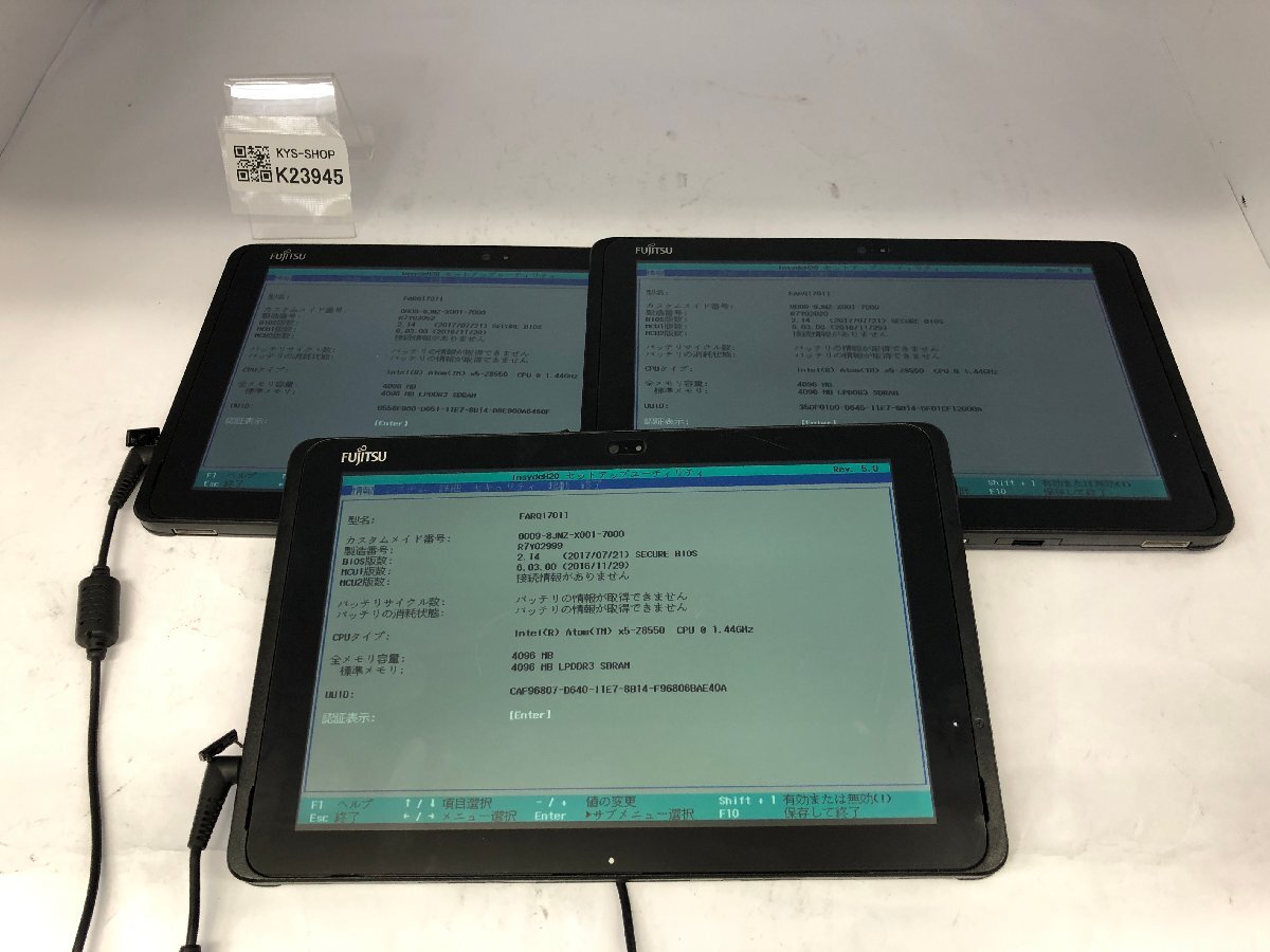 ジャンク3台セット/FUJITSU ARROWS Tab Q507/Atom X5 Z8550 1.44GHz/64GB/4GB/10.1インチ/OS無し/高解像度/AC欠品【K23945】