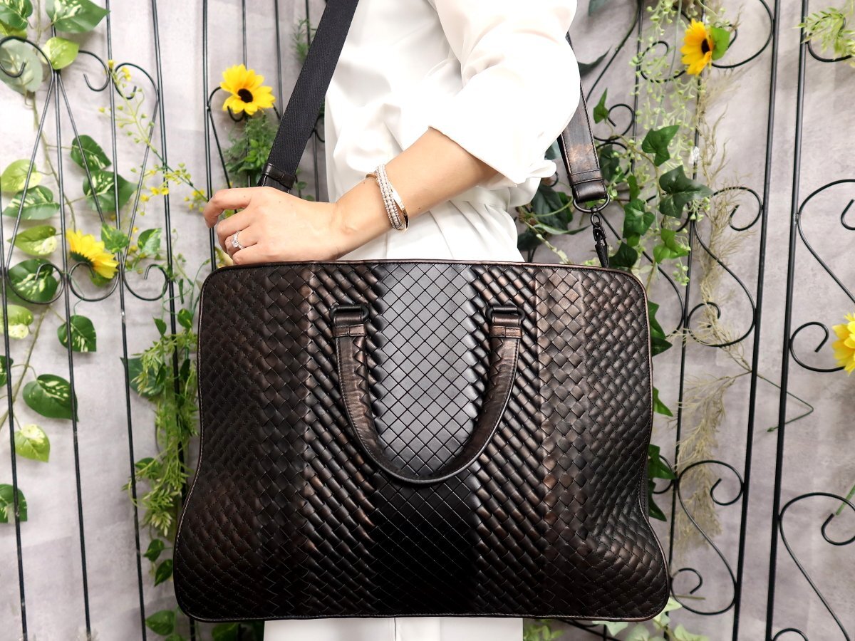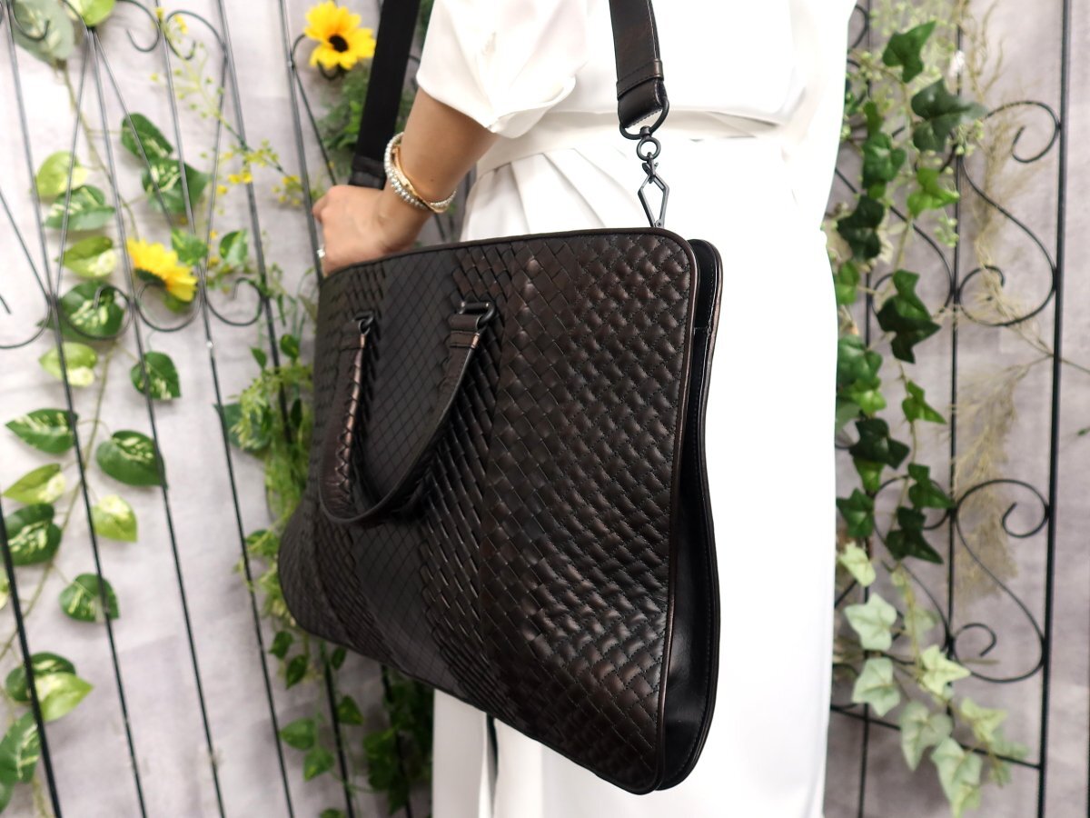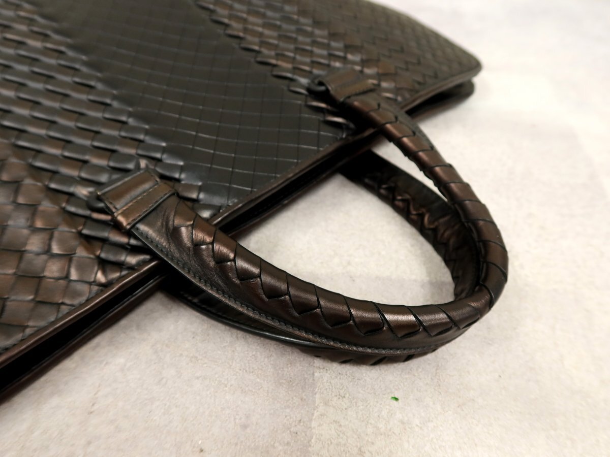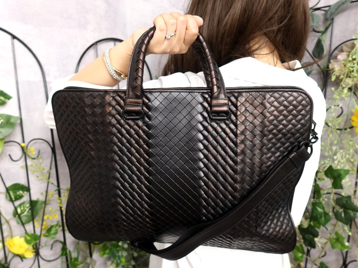 ★●超美品●ボッテガ ヴェネタ●メンズ●イントレチャート●カーフ レザー 本革●2way ビジネス バッグ●メタリックブラウン●A4●B212