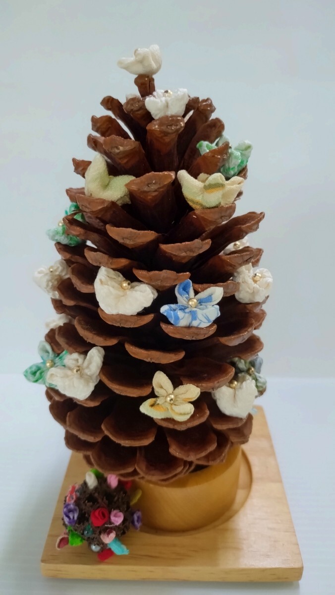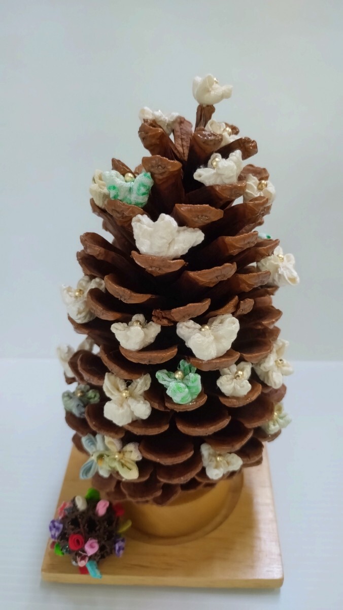 大きいサイズの松ぼっくりで作った和ツリー、松ぼっくりツリーになります