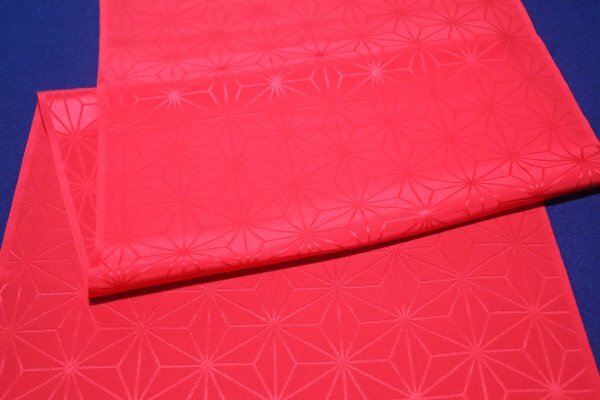 | 【京わぎれ】正絹 紋綸子生地 (国産小松綸子) 無地染はぎれ 麻の葉文様地紋 赤色(真っ赤に近い赤) 3.4m 少難品 ② | ||||