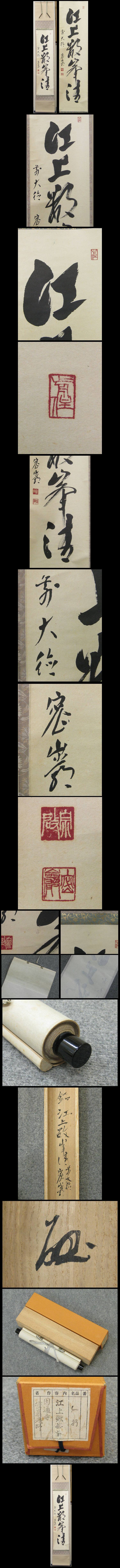 【心庵】掛軸 臨済宗 前大徳 円通寺 栗原密厳 紙本 一行書「江上数峯青」/肉筆 共箱 花押 真作 A650