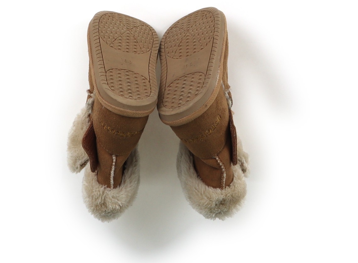 実際のサイズ表記は18cm。ムートンブーツです。全体的に毛羽立ちがあります。使用感ありますが、まだお使いいただけそうです。