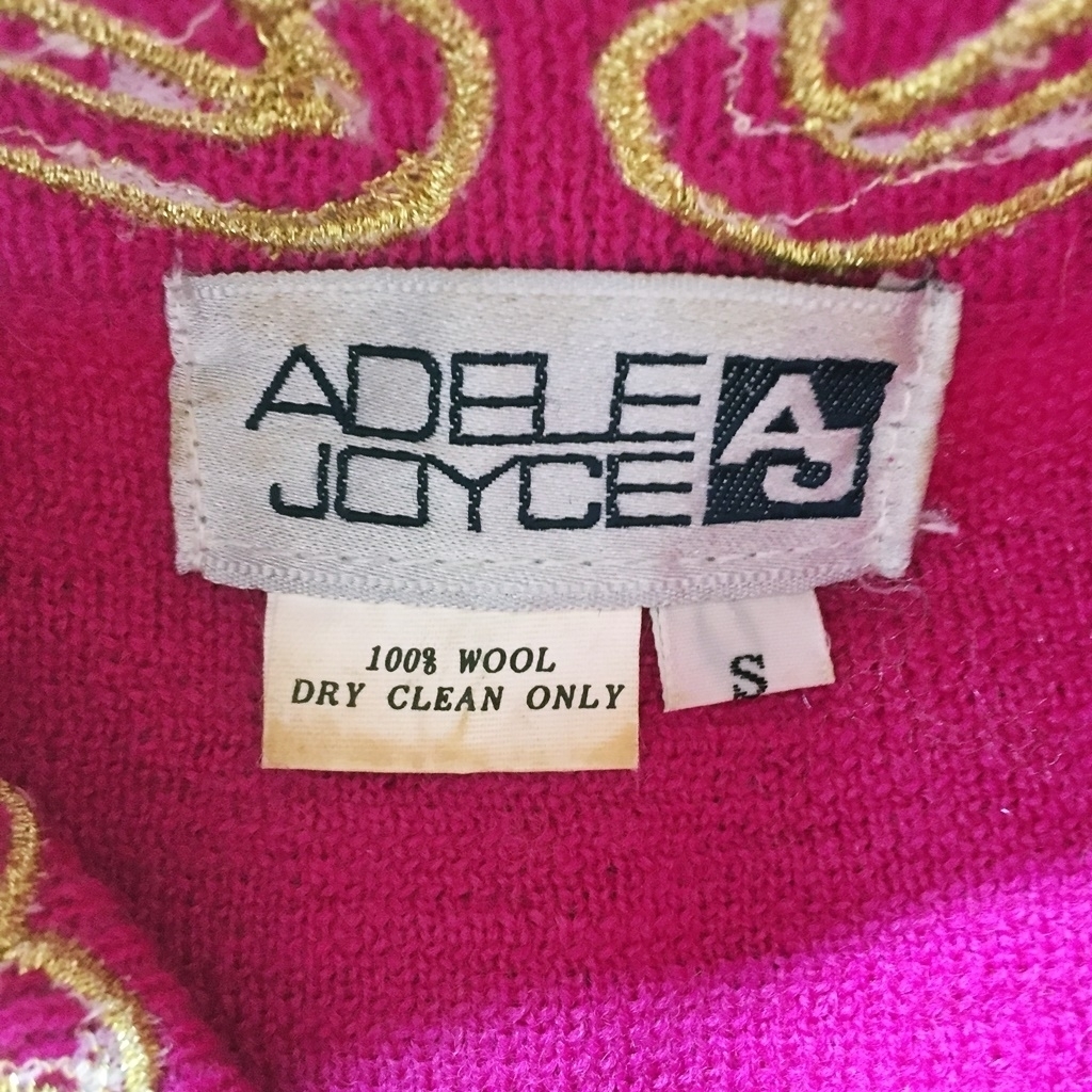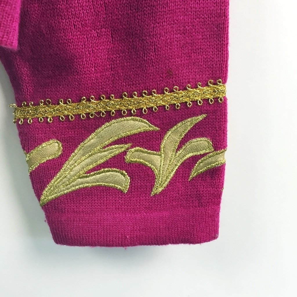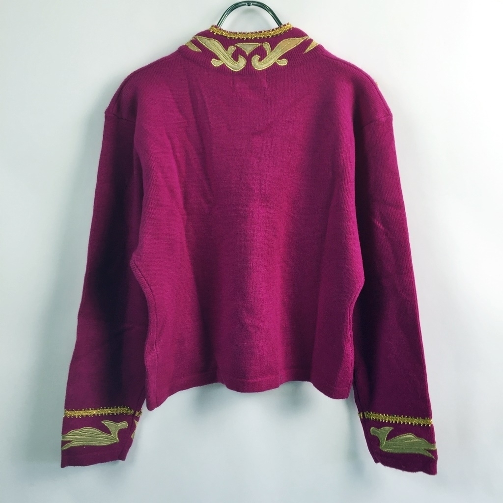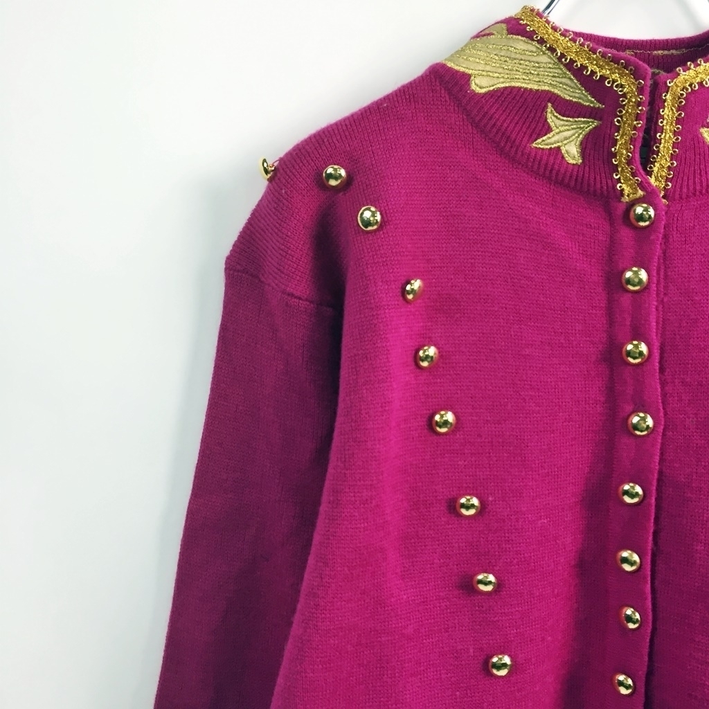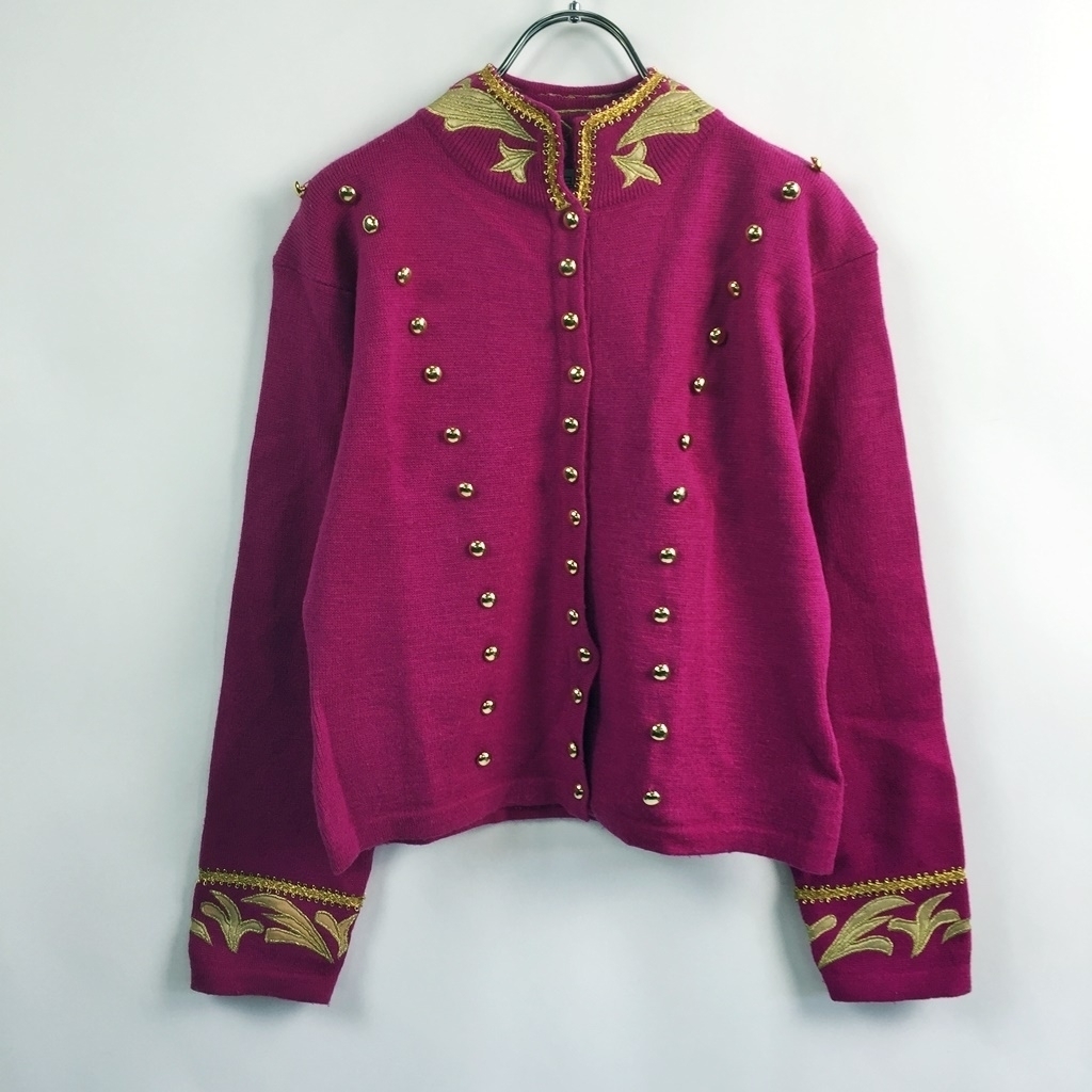 商品: 豪華デザイン★ADELE JOYCE 長袖ニット カーディガン スタッズ ラメ 刺繍 ウール100% ピンク サイズS レディース