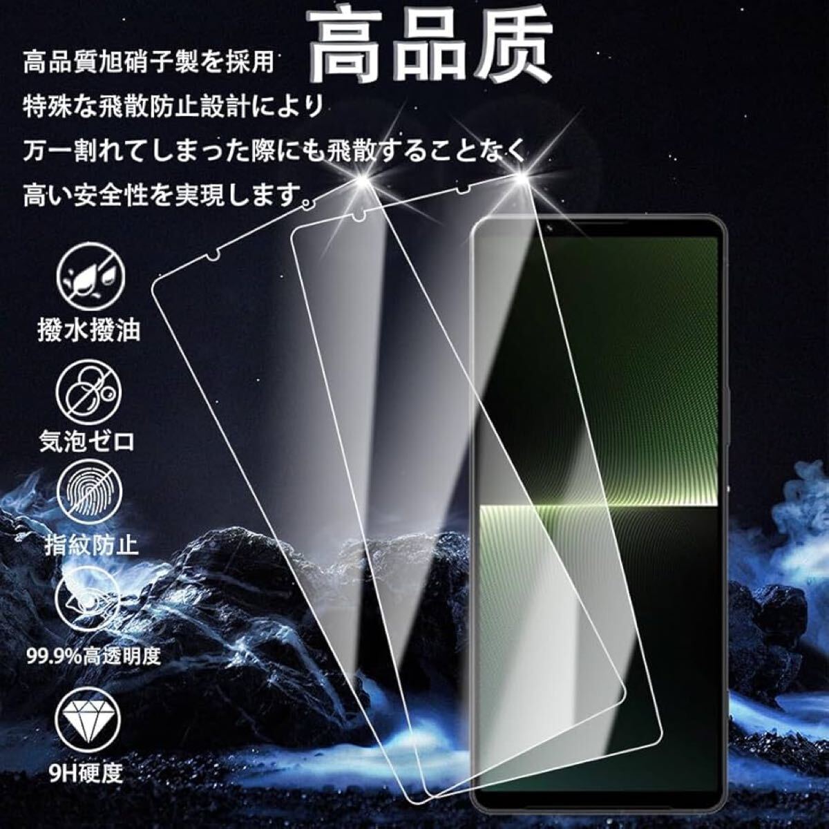 HUAKE xperia 1 v ガラスフィルム【(2枚)ガラスフィルム 】Xperia 1 V 第5世代 2023 so-51d sog10 用 国産硝子素材製 強化 ガラス 指紋防止 液晶 保護 フィルム