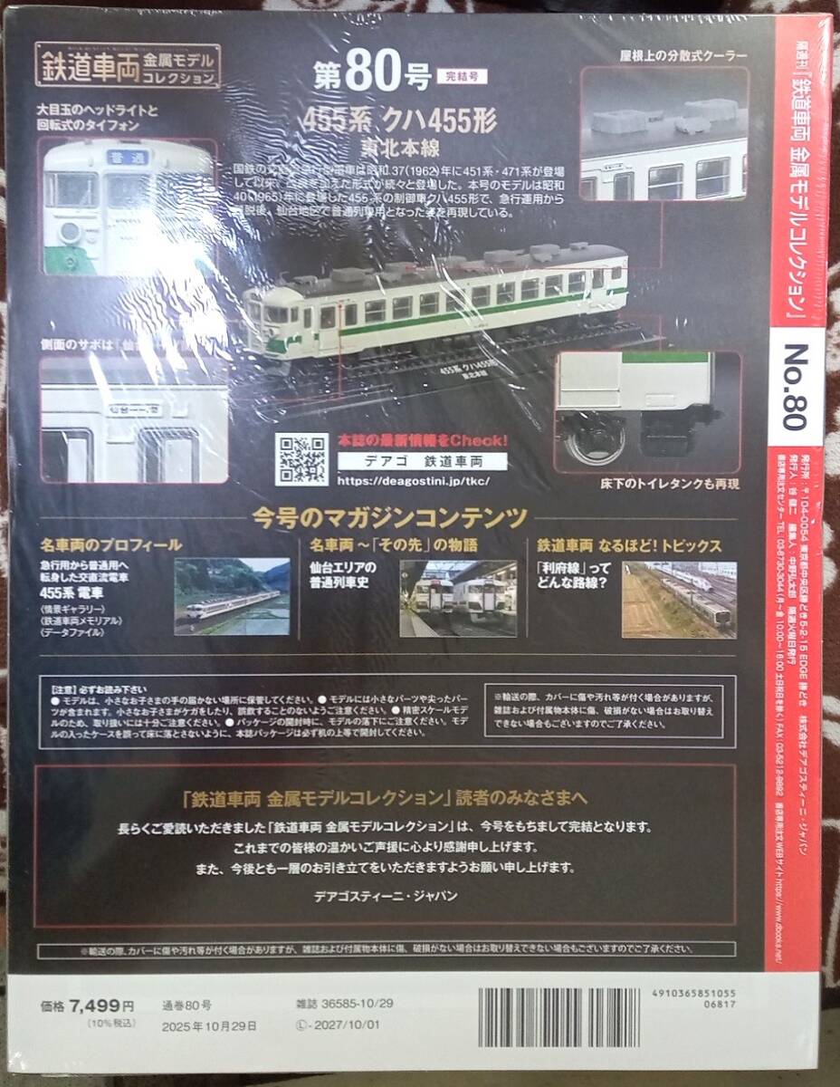 ☆ディアゴスティーニ 1/87 鉄道車両金属モデル No.80 完結号 455系 クハ455形 東北本線☆新品未開封品