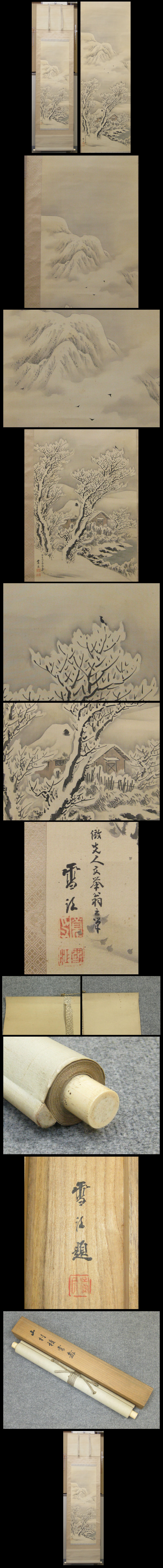 【心庵】掛軸 野村雪江 絹本「山村積雪図」 野村文挙の養嗣子/肉筆 共箱 真作 日本美術協会委員 日本画会評議員 熊本 A1151