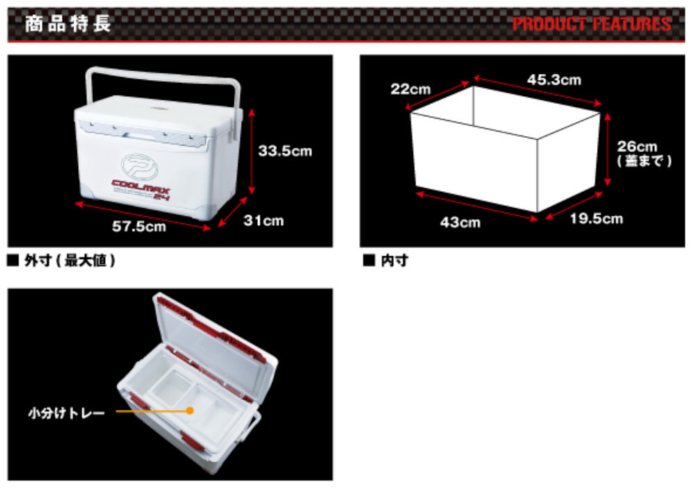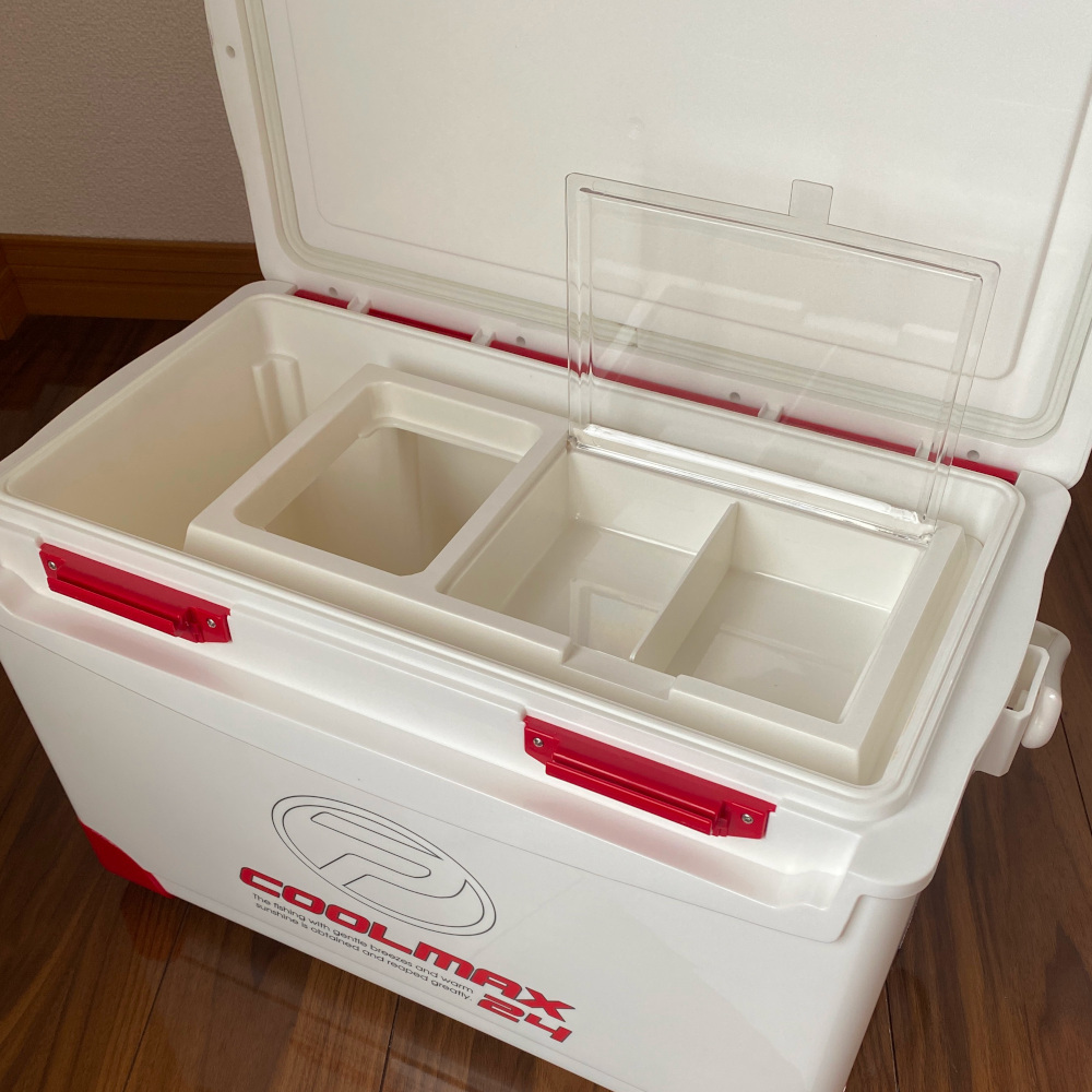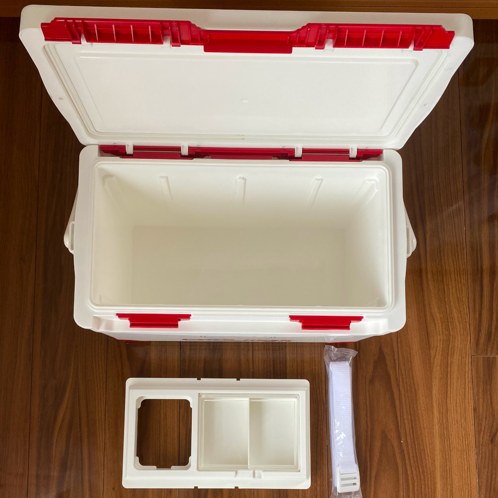 持ち運びに便利な成型ハンドルを標準装備したフィッシングクーラー