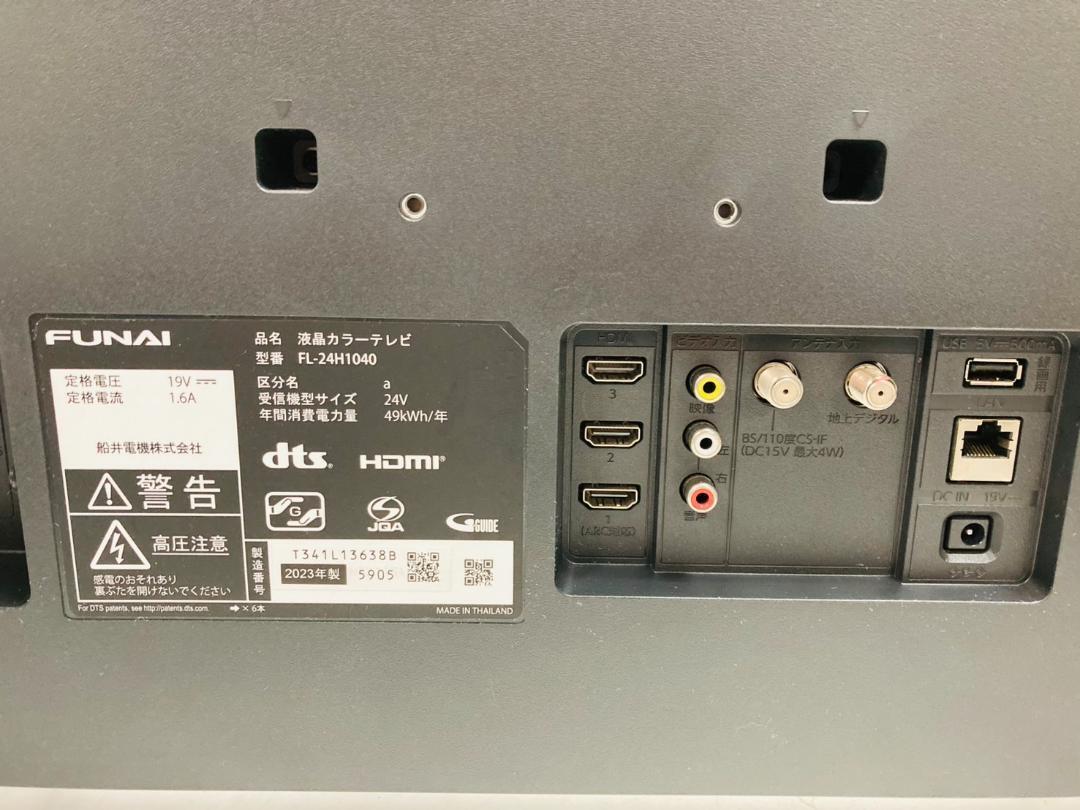 こちらはフナイの液晶カラーテレビ、モデル番号FL-24H1040です。2023年製で、本体のみの販売となります。コンパクトなサイズながら高画質な映像を楽しめるモデルで、シンプルなデザインが特徴です。設置や操作も簡単で、家庭やオフィスのさまざまなシーンに適しています。