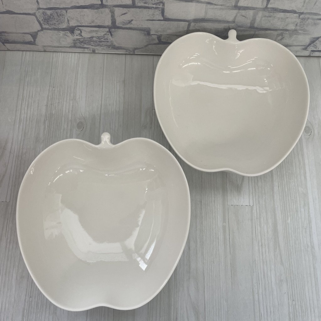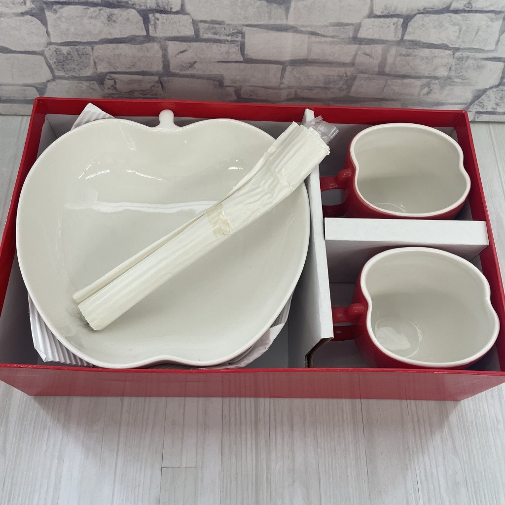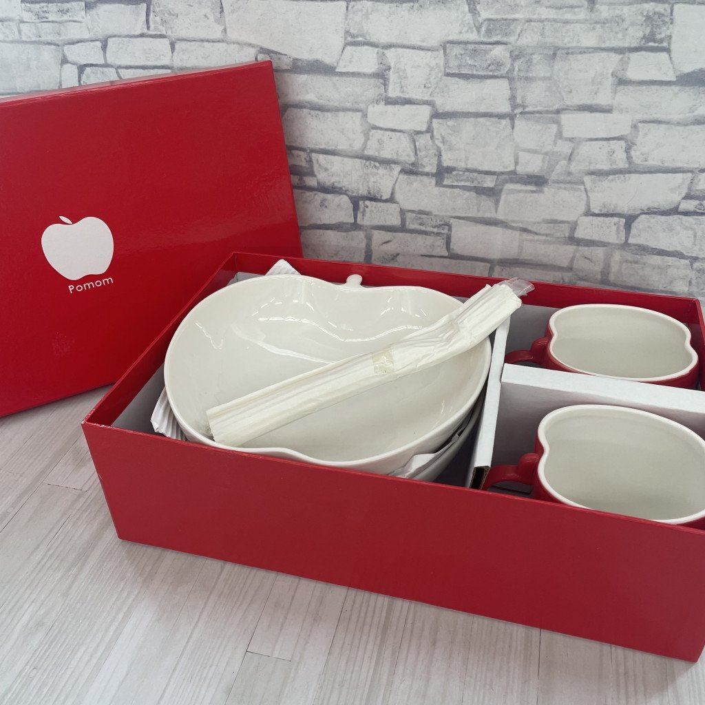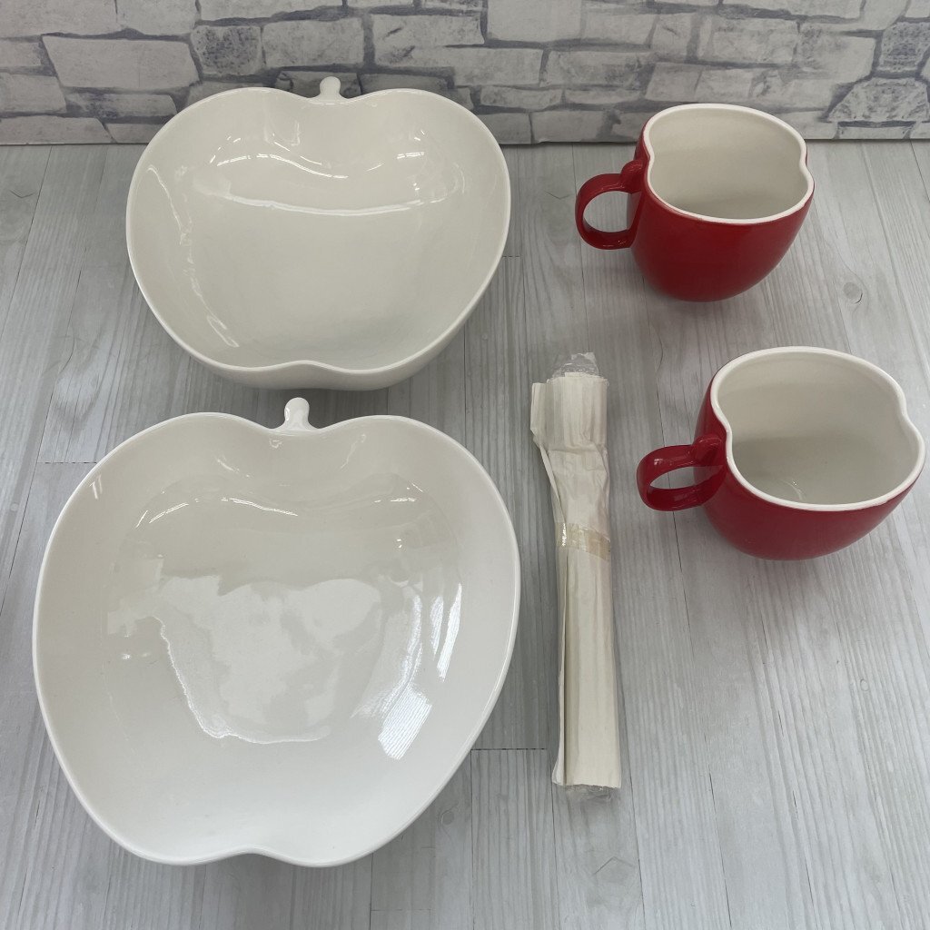 ▲1円スタート▲未使用 Pomom ポムム りんご型 洋食器 ホワイト レッド プレート カップ 箱あり KN204620