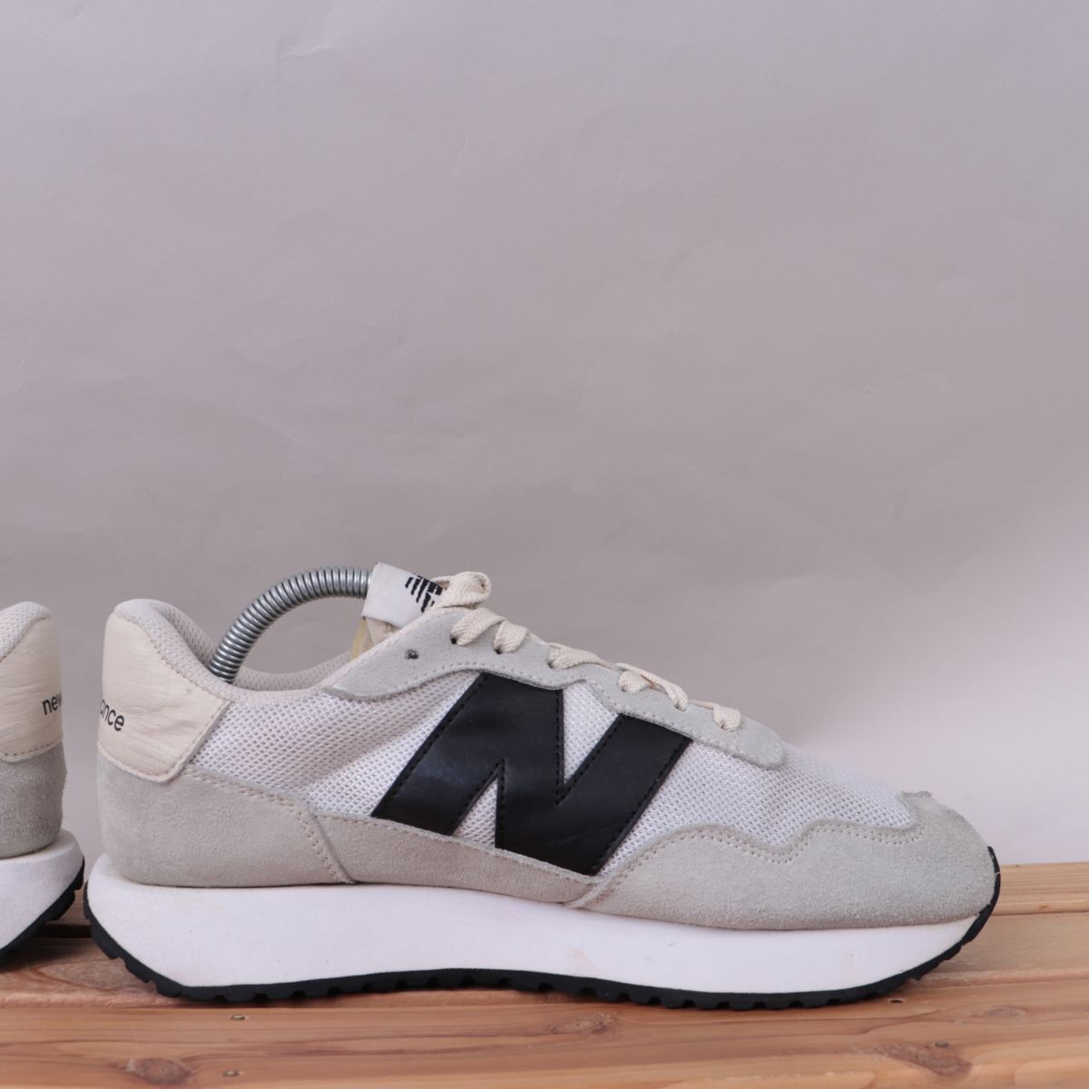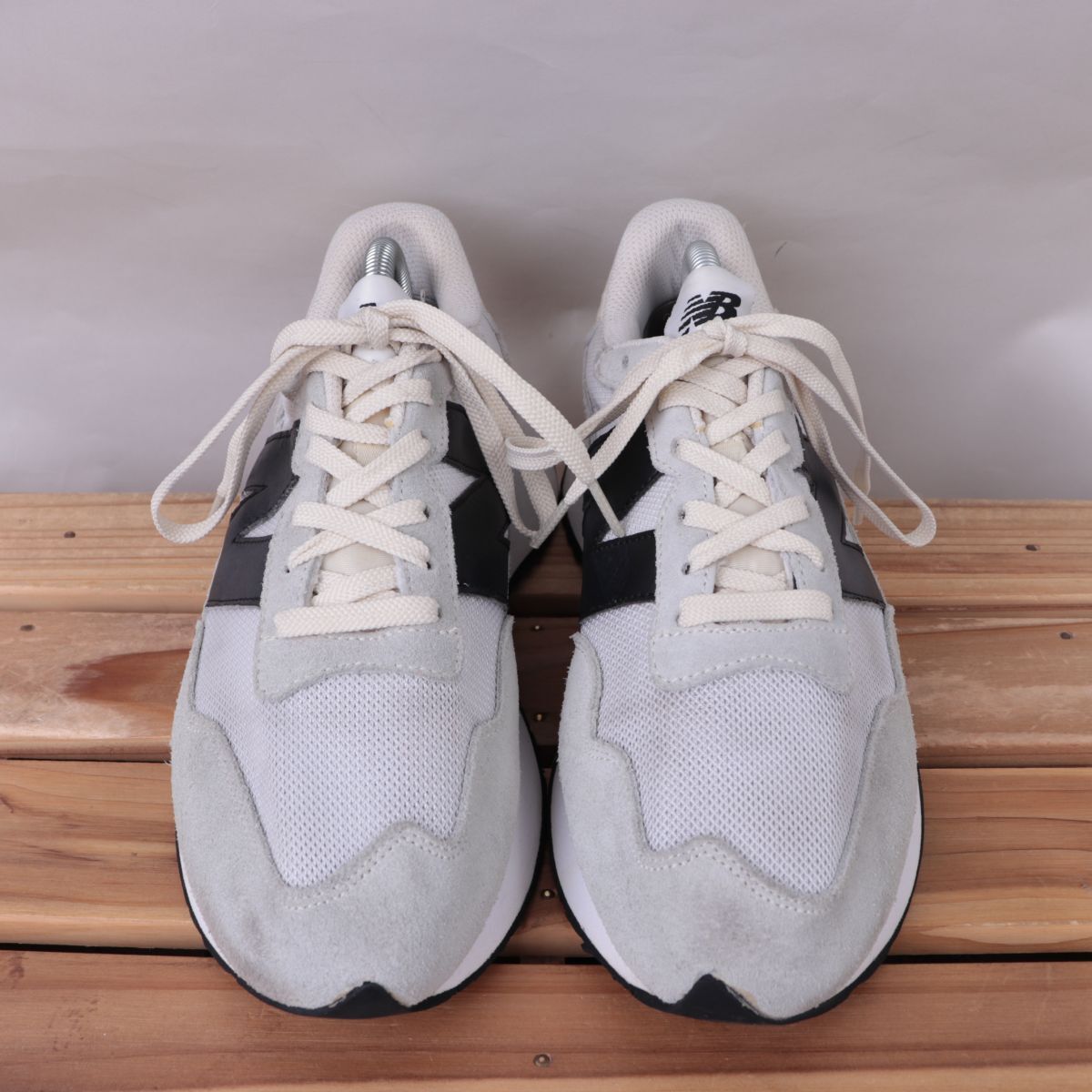 z2731【MS237CB】ニューバランス US8.5 26.5cm/灰 ライトグレー 黒 ブラック 白 ホワイト アイボリー newbalance メンズ スニーカー 中古