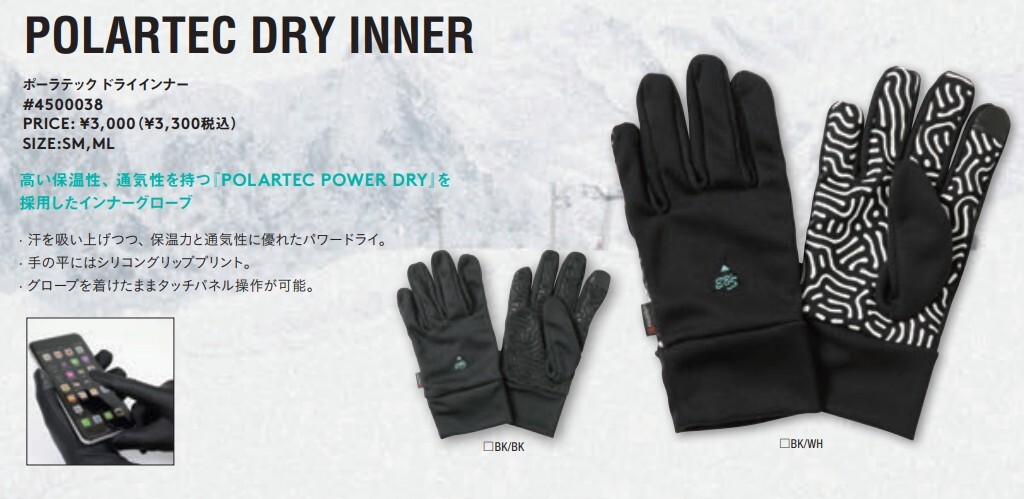 高い保温性、通気性を持つ『POLARTEC POWER DRY』を採用したインナーグローブ