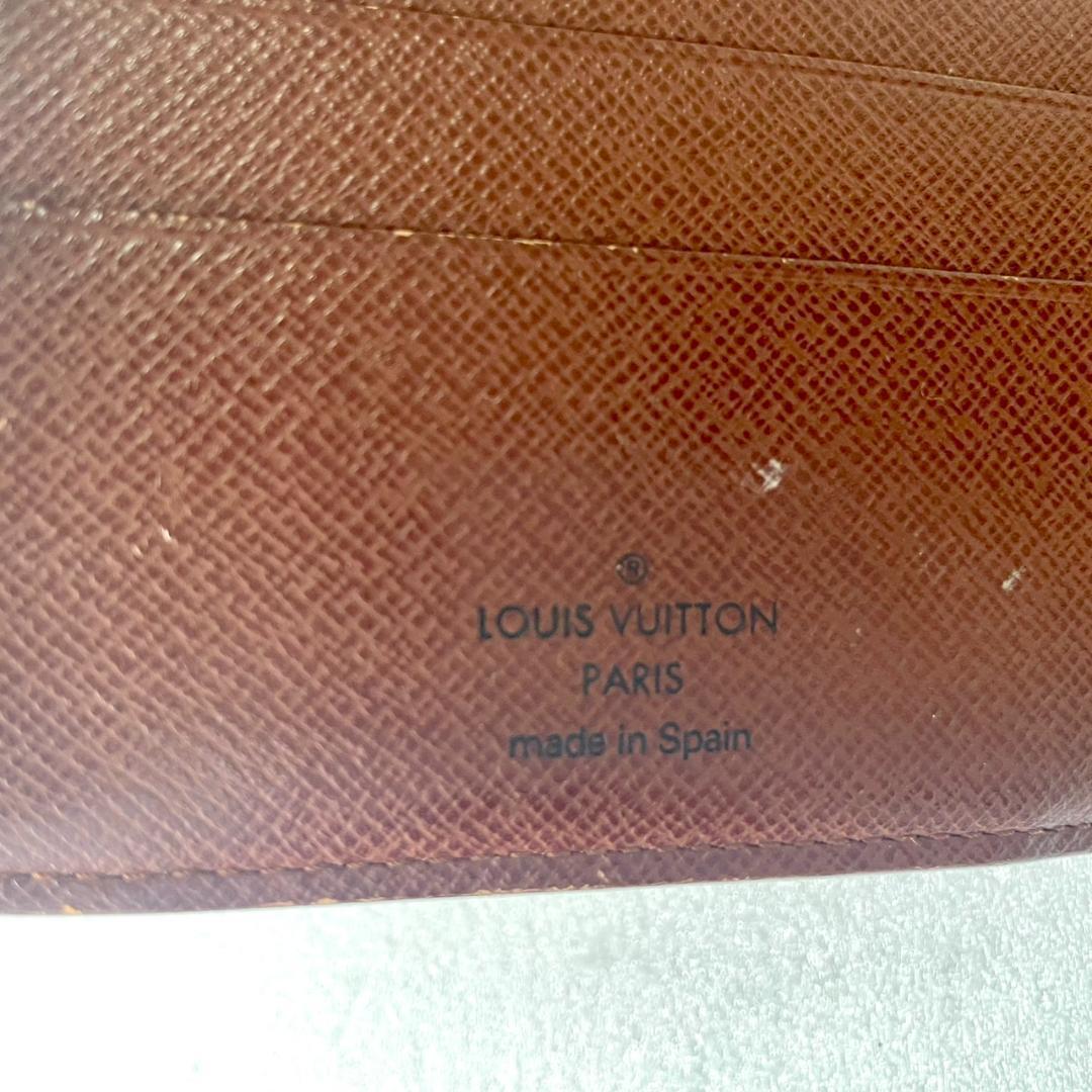 ブラウンレザーのLouis Vuitton二つ折り財布、5つのカードスロットと1つの内部ポケット付き。