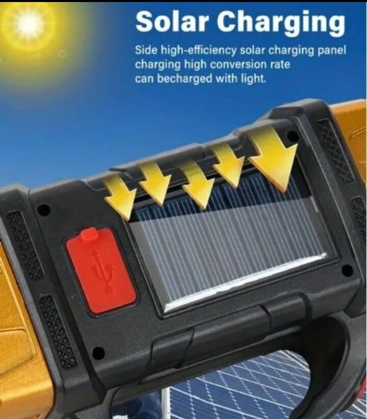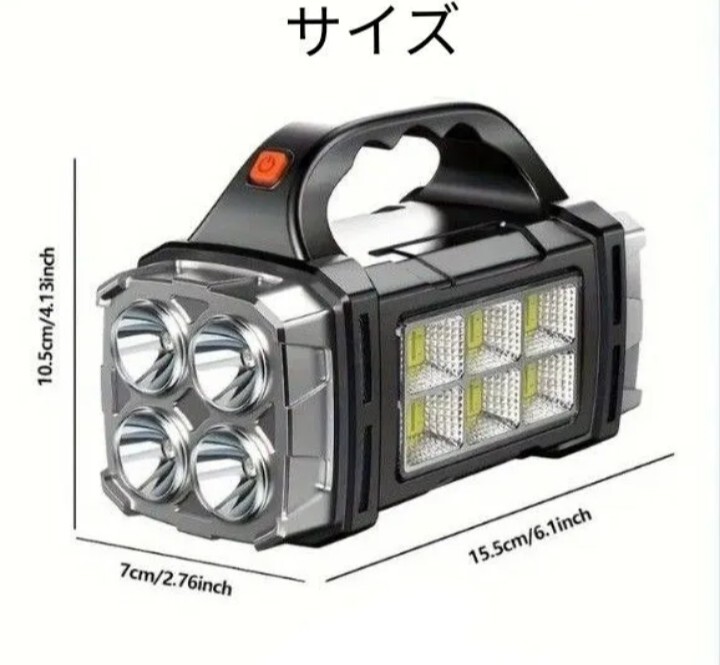 NEW】多機能 LED懐中電灯 充電式 4モード ソーラーパネル装備 防水 スマホ充電可能 アウトドア 防災ライト シルバー