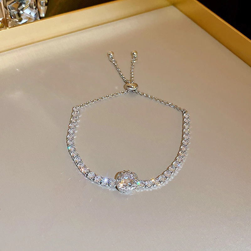 洗練され気品UP★白金k18メッキ 大粒czダイヤモンド◆シルバーブレスレット