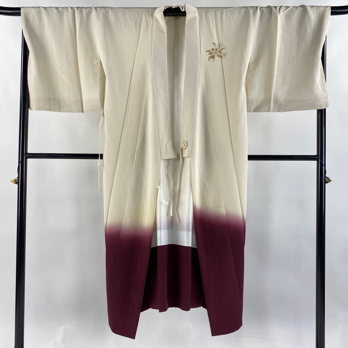 | 道中着 美品 逸品 草花 染め分け ラインストーン クリーム 身丈136.5 裄丈68 L 正絹 【中古】 |