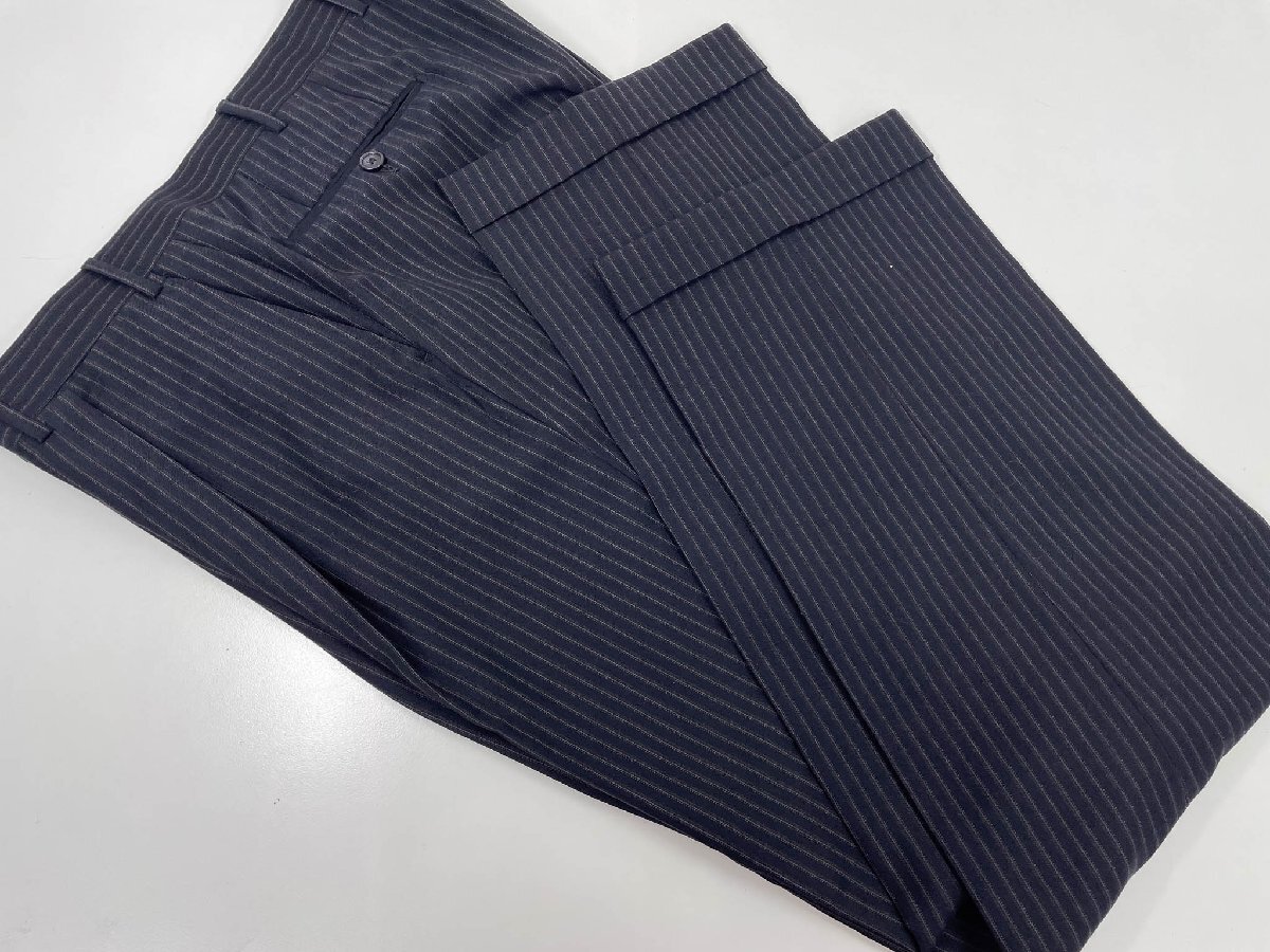 ・スラックス・・・ウエスト実寸約96センチ(0センチ出し、4センチ詰め可能)、股上約29~30センチ、渡り幅約36センチ、股下約80センチ、総丈約107センチ、裾幅約22.5センチ、ダブル仕上げ(ダブル幅約4センチ、最大でプラス8センチ長くできます)