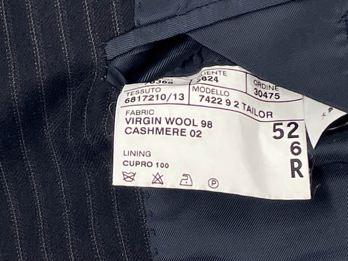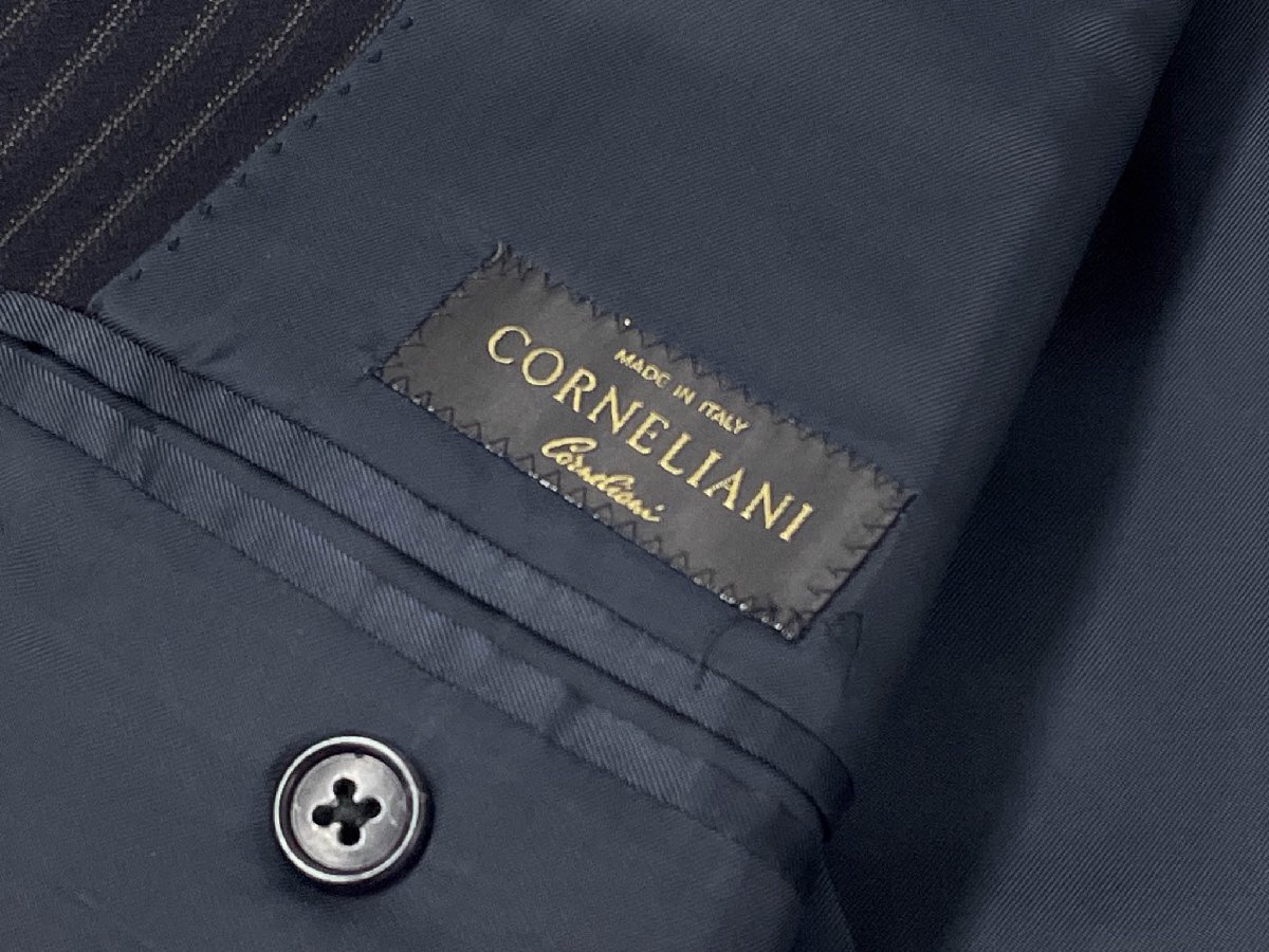 美品【CORNELIANI コルネリアーニ】7422 9 2TAILOR Super150’S カシミア混 3B段返り ストライプ スーツ(メンズ) 52/6R 紺 伊製◇35RMS2658