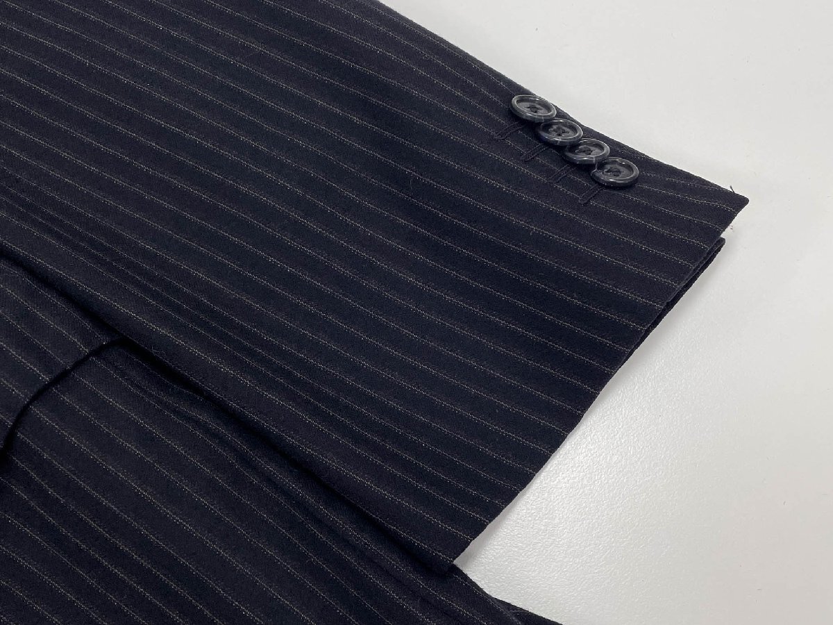 ・当店で出品しているスーツはお直しが入っている場合がございます(新品・未使用品を含む)。サイズ詳細を必ずご確認下さいませ。気になる方はご購入前にかならずお問い合わせ下さい。当店は簡易包装を心がけておりますので、到着後はお客様ご自身でプレスをお願い致します。